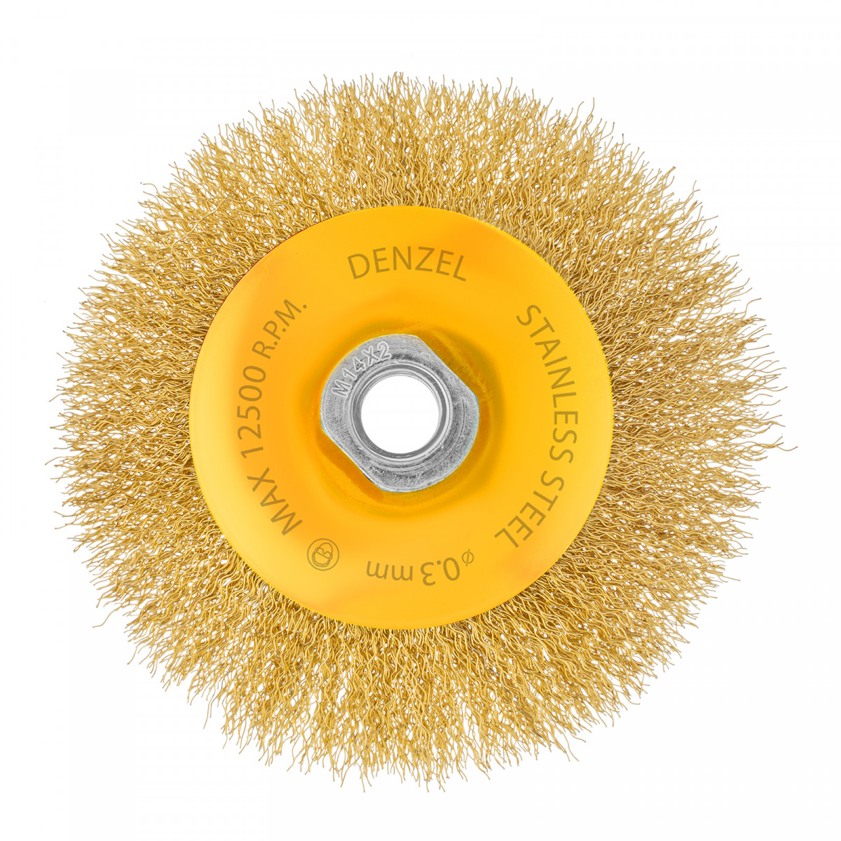 Щетка для УШМ, 125 мм, "Тарелка", витая нержавеющая проволока 0.3 мм, М14 Denzel