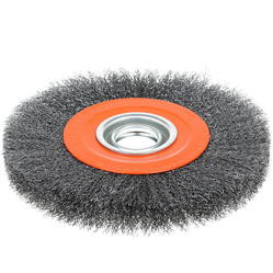 Щетка круглая предназначена для точила и применяется для снятия лака, краски, зачистки от ржавчины различных поверхностей и изделий. Рабочая часть состоит из волнистой стальной проволоки. Специальная форма щетки в виде диска позволяет работать в труднодоступных местах.