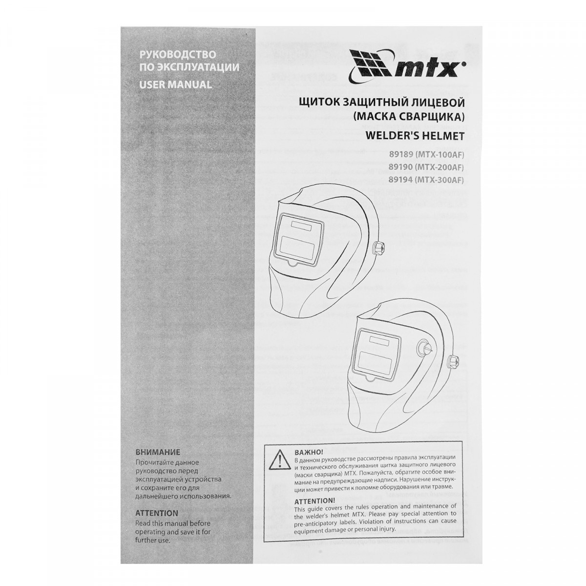 Лицевой защитный щиток (маска сварщика) MTX-300AF 89194 со смотровым окном размером 93 х 43 мм имеет функцию затемнения DIN 4/9-13 и предохраняет глаза, лицо и шею мастера от брызг расплавленного металла, искр, а также яркого света и ультрафиолетового излучения. Два независимых фотодатчика обеспечивают четкую работу светофильтра. Средство защиты используется во время сварочных работ в мастерской, гараже, на строительной площадке.