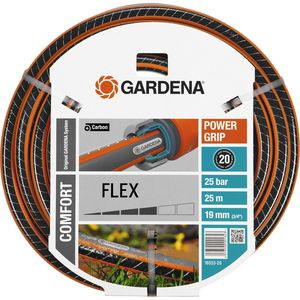 Шланг FLEX Gardena 18053-20.000.00 имеет ребристый профиль Power Grip, который гарантирует идеальное соединение с коннекторами Базовой системы полива. Текстильное армирование, усиленное углеродом, препятствует перегибанию, спутыванию и перекручиванию шланга во время эксплуатации. Отсутствие фталатов, тяжелых металлов и невосприимчивость к УФ-излучению делают шланг экологичным, а благодаря толстым стенкам он служит долго (выдерживает высокое давление до 25 бар).