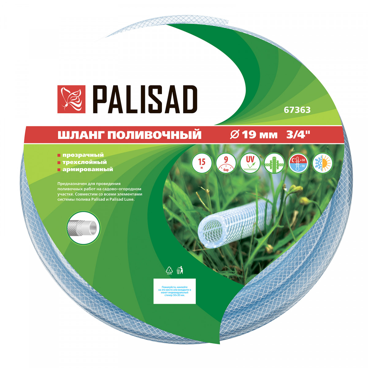Шланг поливочный прозрачный армированный 3-х слойный, 3/4", 15 м Palisad