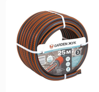 Армированный шланг для полива GARDEN Жук сочетает в себе премиальное качество и высокие эксплуатационные свойства. Выдерживает рабочее давление до 22 атм. Усилен полиамидной нитью, что препятствует скручиванию, изломам и разрывам (ромбовидное плетение). Шланг поливочный 25 метров длиной применяется на садовых участках и транспортировки жидкостей, в том числе пищевых.