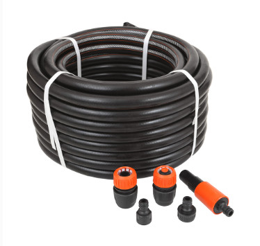 Набор для полива ЖУК Оптима включает в себя поливочный шланг и комплектующие, необходимые для его быстрого подключения и использования: