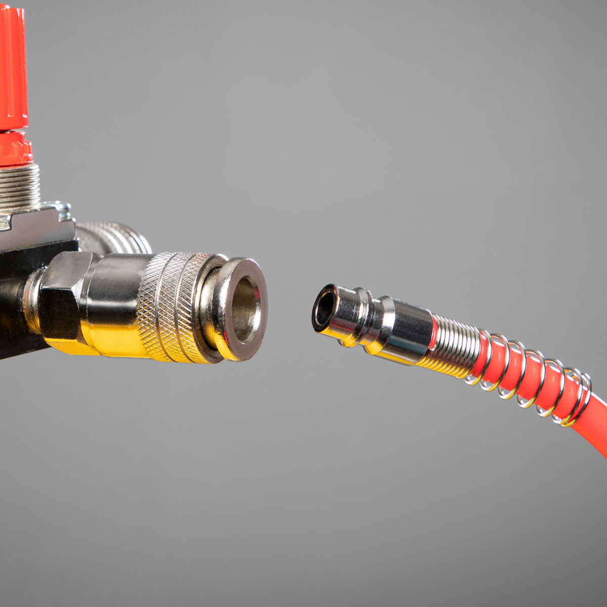 • Быстроразъемное соединение ускоряет подключение пневмоинструментов, что экономит время и силы мастера.