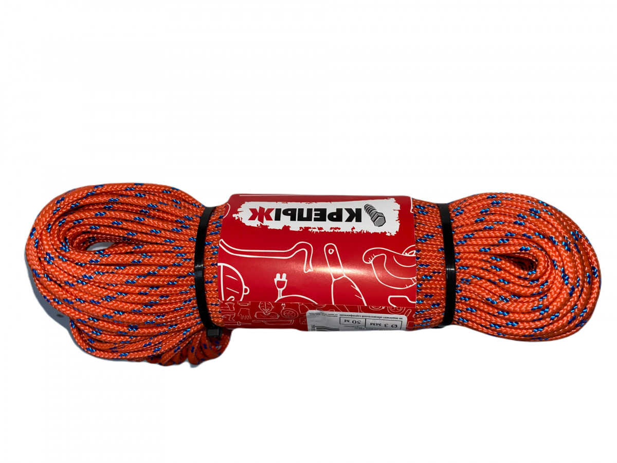 Шнур крученый полипропиленовый 3мм 50м 16пр.с серд.со светоотражающей нитью КРЕПЫЖ