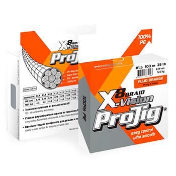 ProJig Х8-Vision - это серия мягких восьмипрядных плетеных шнуров оранжевого цвета. Имеют абсолютно круглое сечение и стойкую флуоресцентную окраску по технологии Fluo Vision. Флуоресцентный оранжевый цвет повышенной яркости обеспечивает хорошую видимость шнура на поверхности воды при дневной рыбалке, а также в темное время суток, когда для освещения используется фонарик. Шнуры ProJig Х8-Vision производятся из 100% РЕ по технологии плетения Х8 из восьми нитей. Идеально гладкая поверхность и специальное покрытие шнура позволяют совершать сверхдальние забросы. Шнуры характеризуются максимальной прочностью при малом диаметре. Защитное покрытие блокирует негативное воздействие УФ-лучей и продлевает срок эксплуатации шнура до нескольких сезонов.