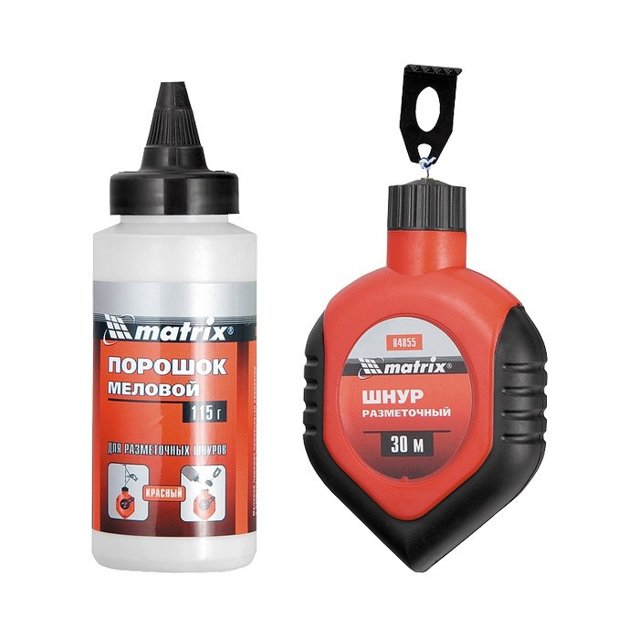Разметочный шнур Matrix 84855 в пластмассовом обрезиненном корпусе, поставляется с красным порошком и используется для построения прямых разметочных линий на горизонтальных и вертикальных поверхностях. Используется во время проведения строительных и ремонтно-отделочных работ.