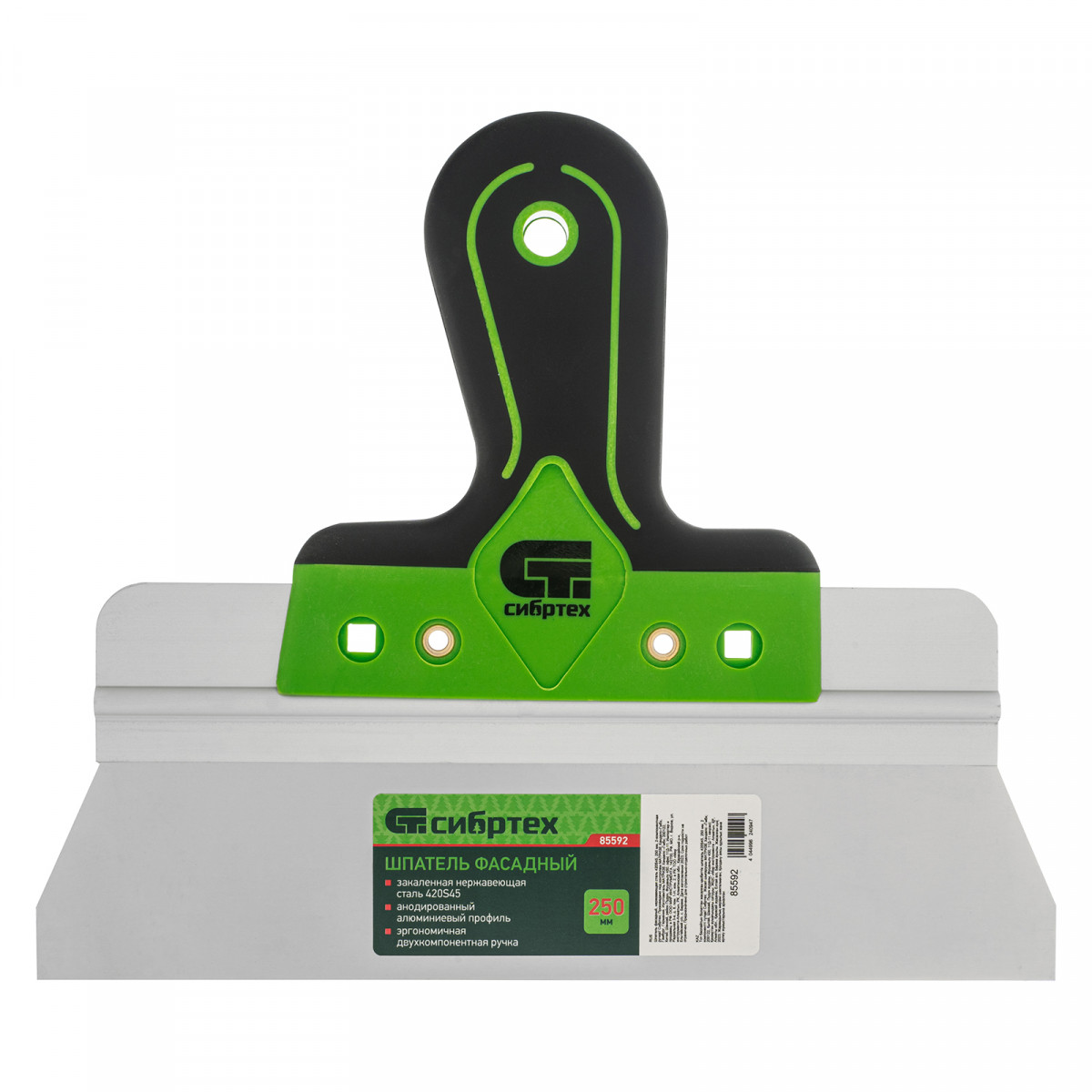 Шпатель фасадный с двухкомпонентной полимерной ручкой Сибртех 85592 — это надежный и эффективный инструмент, выполненный из нержавеющей стали 420S45. Предназначен для профессионального выравнивания поверхностей. Благодаря прочности и качественному исполнению обладает высокой производительностью и долгим сроком службы.