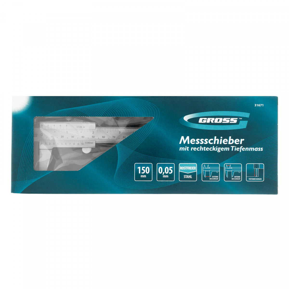 Штангенциркуль, 150 мм, 0.05 мм, нержавеющая сталь, с глубиномером Gross