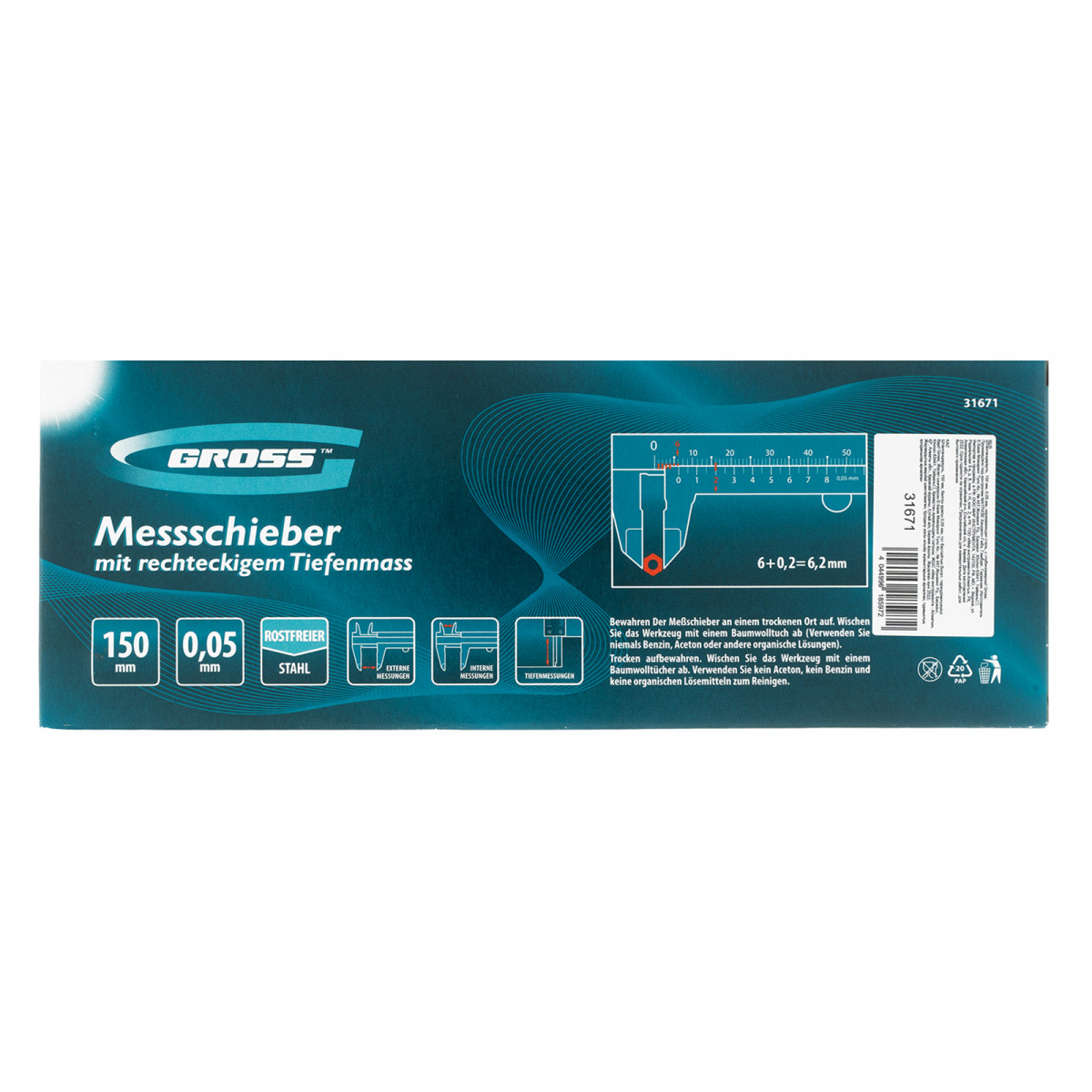 Штангенциркуль Gross 31671 из нержавеющей стали, с глубиномером, предназначен для измерения внутренних и наружных размеров деталей и заготовок в диапазоне 0-150 мм. Значение отсчета по нониусу составляет 0,05 мм. Погрешность находится в пределах ±0,02 мм при измерении до 100 мм, и ±0,03 мм — свыше 100 мм. Инструмент имеет губки двух видов для облегчения замеров внутри и снаружи предметов. Штангенциркуль будет полезен на производственном предприятии, в слесарной и столярной мастерской, автосервисе, а также пригодится в быту.