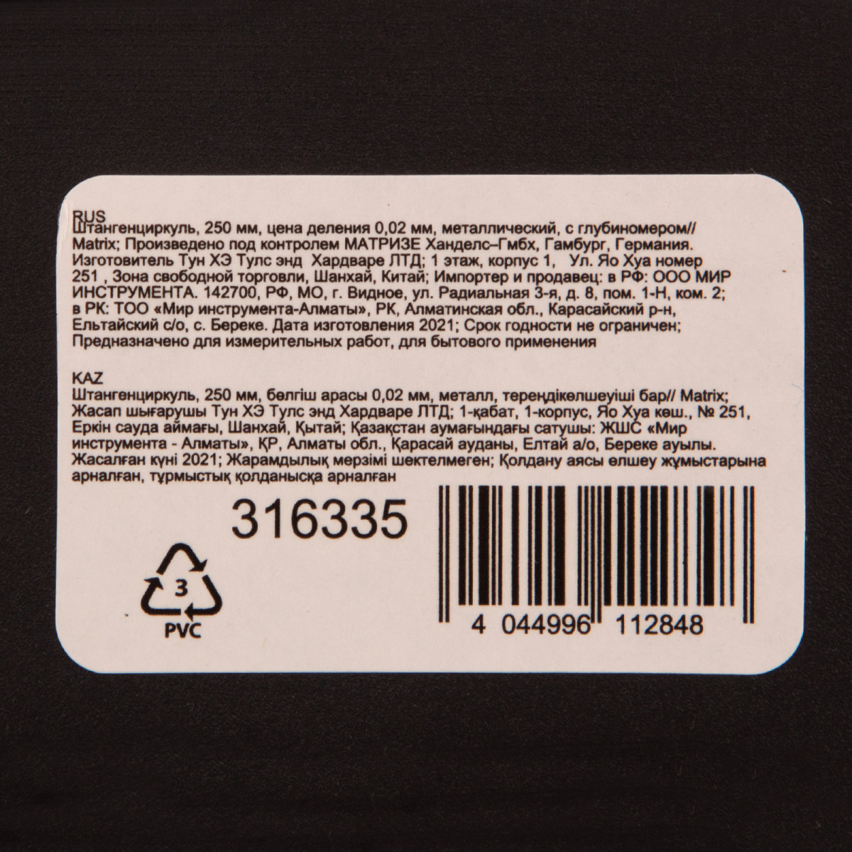 Металлический штангенциркуль с глубиномером Matrix 316335, 250 мм, со значением отсчета по нониусу 0,02 мм, используется для быстрого определения размеров внутри и снаружи деталей, а также глубин отверстий и канавок — для этого предусмотрен глубиномер. Погрешность составляет ±0,02 мм при измерении размеров до 100 мм, и ±0,03 мм — свыше 100 мм. Измерительный инструмент используется в токарном, слесарном деле, будет полезен на производственном предприятии, а также дома или в гараже.