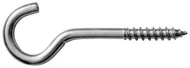 Шуруп крючок или его второе название шуруп полукольцо выполнен из проволоки на один конец которой нанесена универсальная резьба, а другой конец изогнут в виде полукольца. Сечение проволоки разнообразно и начинается от 2.5-3мм и заканчивая 10-12мм. Шурупы очень хорошо сконструированы для крепления в дереве.