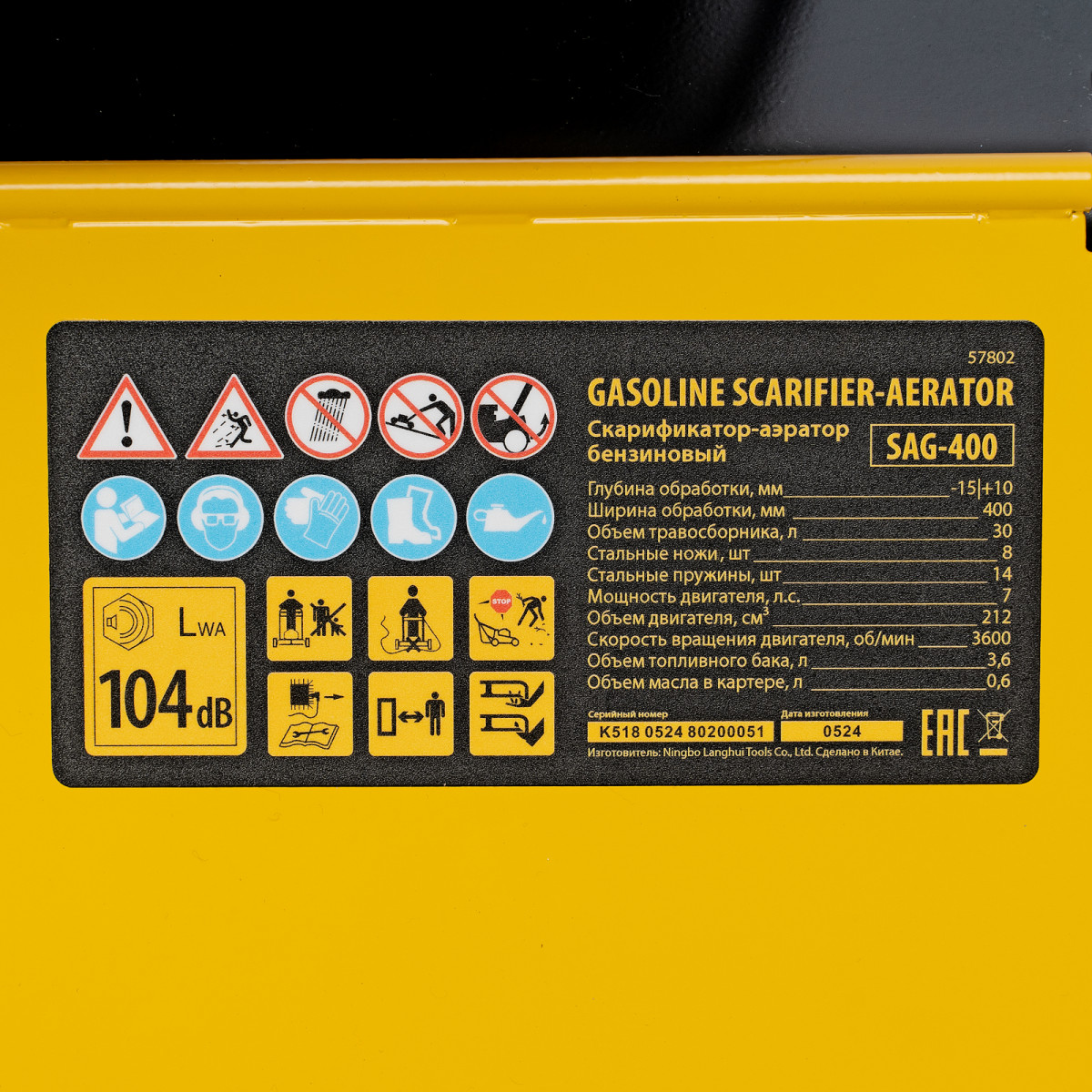 Скарификатор-аэратор бензиновый SAG-400, 212 см3, -15/+10 мм, 40 см Denzel