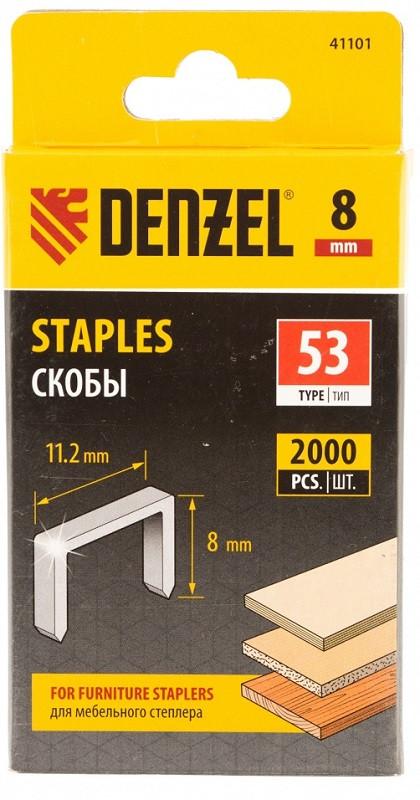 Скобы 8 мм для мебельного степлера тип 53 (2000 шт) Denzel