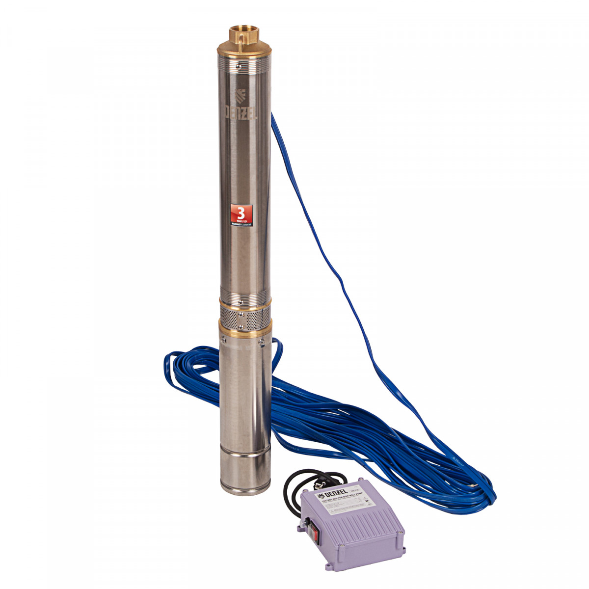 Скважинный насос Denzel DWC-4-80 97256 производительностью 5700 л/ч, диаметром 4″ и мощностью 1500 Вт обеспечивает напор до 80 м. Предназначен для подачи чистой воды из скважин, колодцев, систем водоснабжения, различных накопителей и пресных водоемов с глубины до 17 м (с наращиванием кабеля — до 80 м). Насосная часть из 11 центробежных импеллеров обеспечивает повышенную производительность, что позволяет организовать не только полив приусадебных участков, но и бытовое водоснабжение.