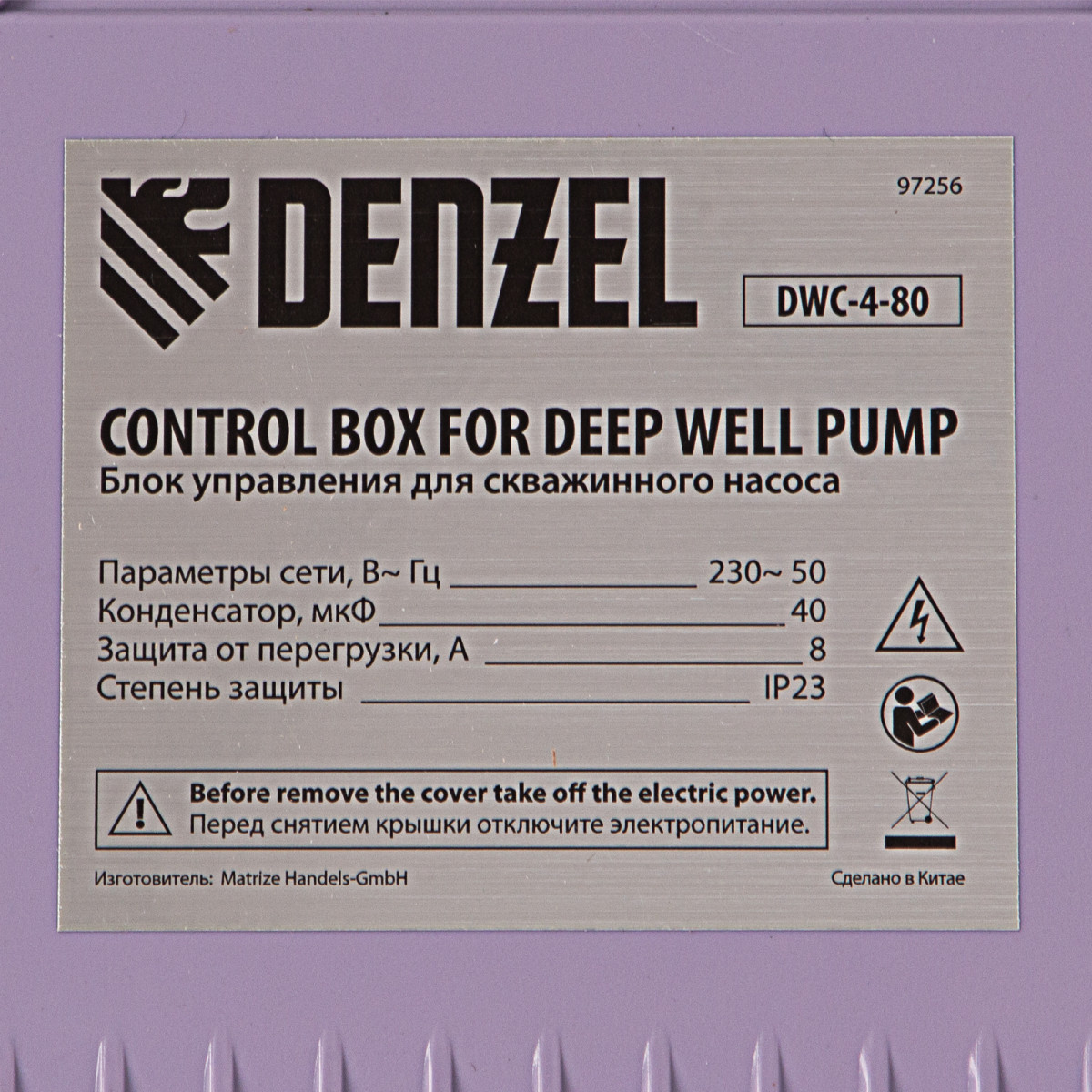 Скважинный насос DWC-4-80, центробежный, диаметр 4", 1500 Вт, 5700 л/ч, напор 80 м Denzel