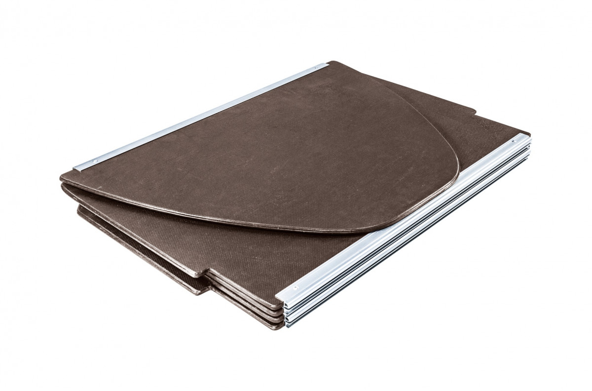 Разборная слань с алюминиевыми профилями - наиболее распространенный тип фанерных сланей для лодок ПВХ. Пазо-гребневый тип соединения в сочетании со стрингерами, повышающими продольную жесткость пола, делают такую слань монолитной конструкцией. Слань для лодки Ривьера 3600 СК Компакт изготавливается компанией "Мастер лодок" из влагостойкой ламинированной фанеры, толщиной 9 мм. Состоит из пяти секций, соединяющиеся между собой полноразмерными А-профилем и Н-профилем. Имеет отверстие под клапан киля, отверстие для доступа к сливному клапану и выпилы под стрингеры.