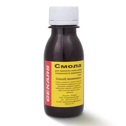 Смола применяется для пропитки скользящей поверхности деревянных промысловых и беговых лыж. Это противодействует попаданию влаги в древесину лыж и предотвращает коробление. Чем качественнее будет пропитана скользящая поверхность, тем долговечнее будут лыжи. Поэтому смоление – второе по значимости действие, после подбора деревянных лыж.
