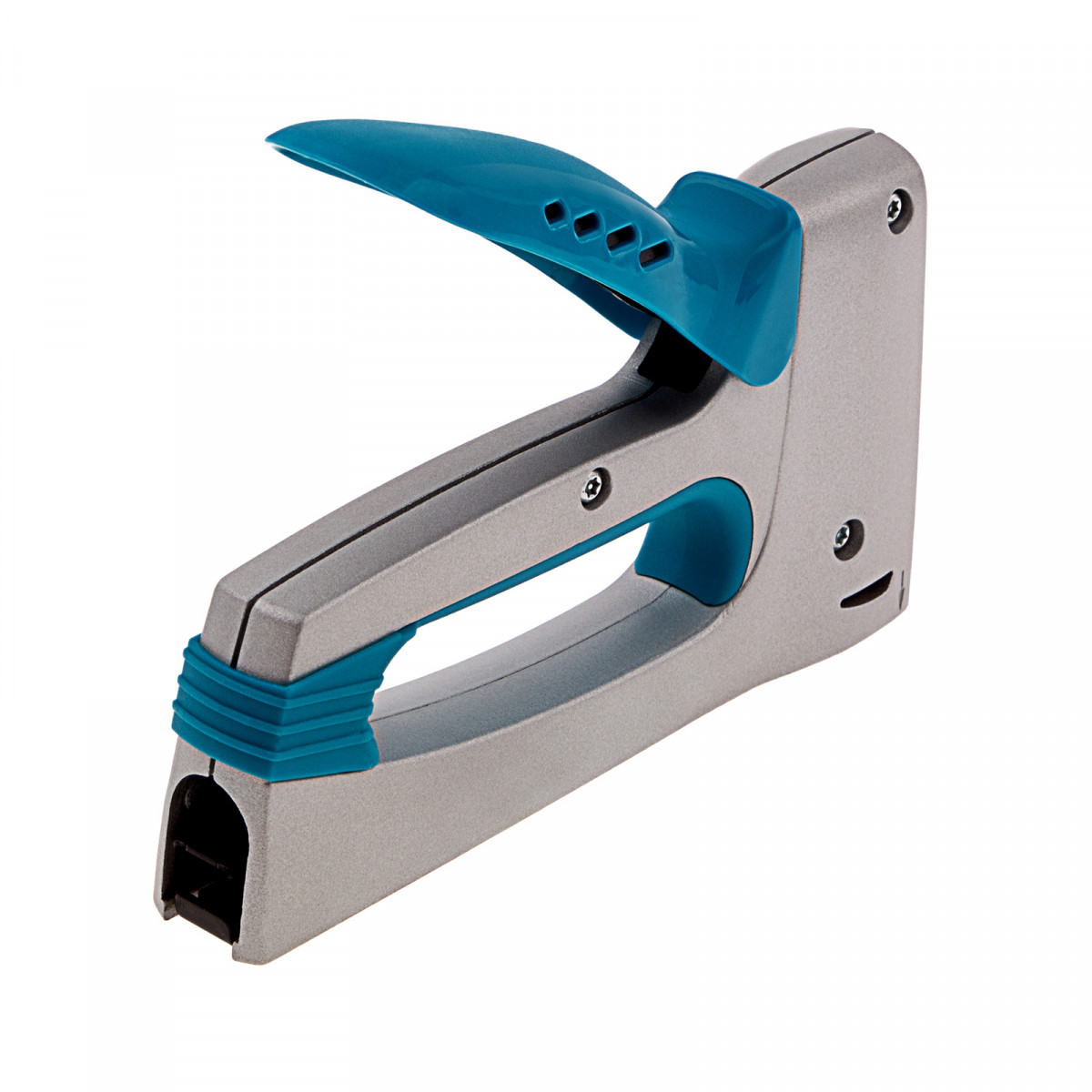 • Безопасность — рукоятка надежно фиксируется в горизонтальном положении, что предотвращает самопроизвольное срабатывание степлера.