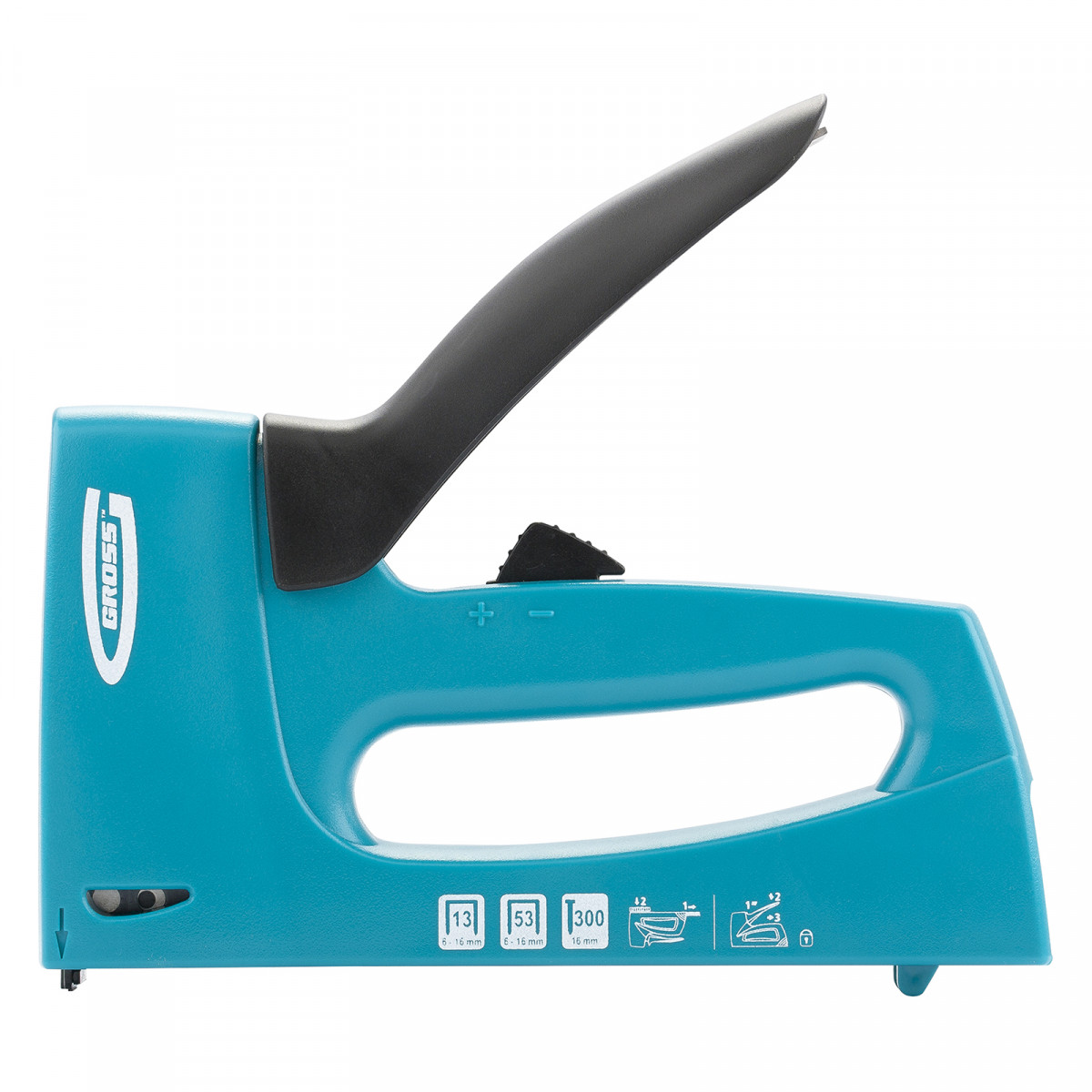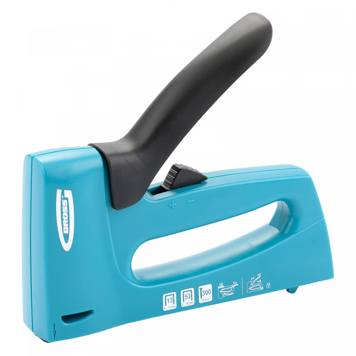 Степлер мебельный, пластиковый корпус, регулировка удара, тип скобы: 13, 53, 300, 6-16 мм Gross