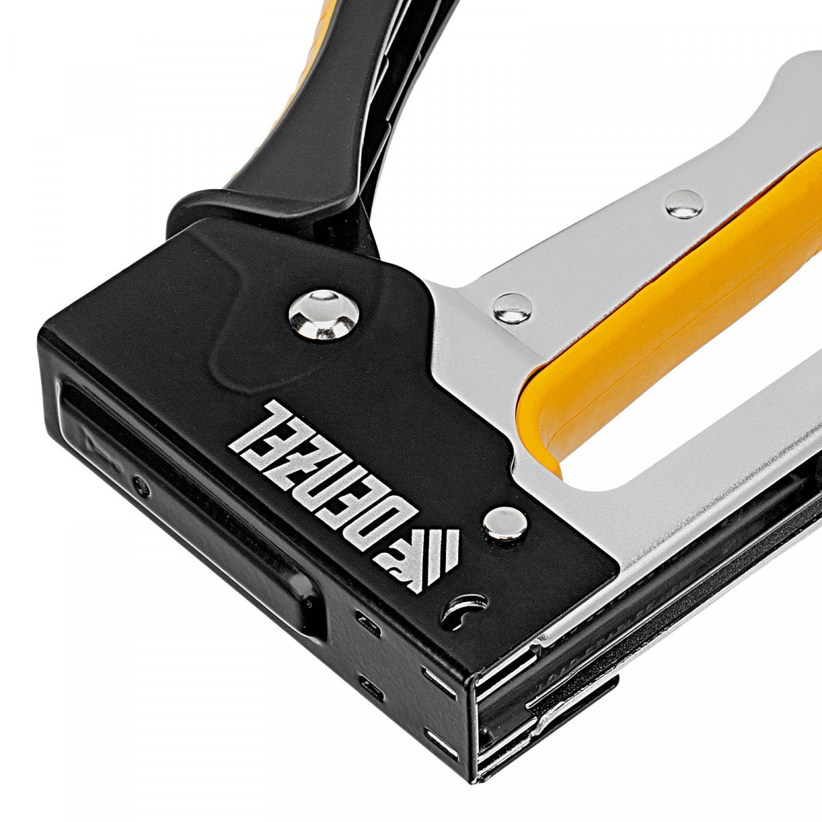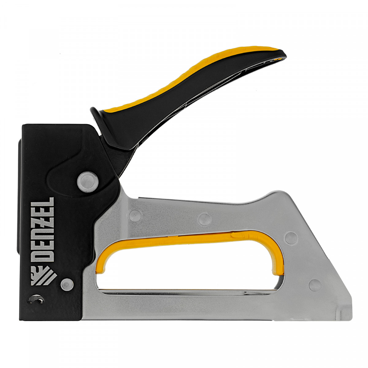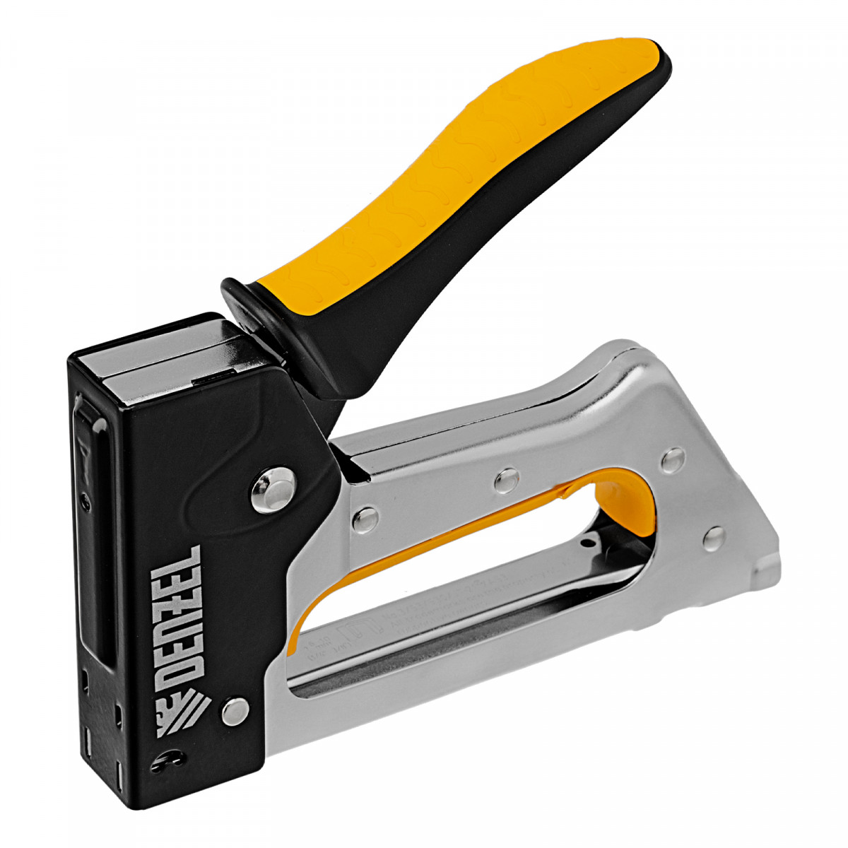 Степлер Denzel 40222 устойчив к деформации благодаря стальному корпусу изготовленному методом штамповки.
