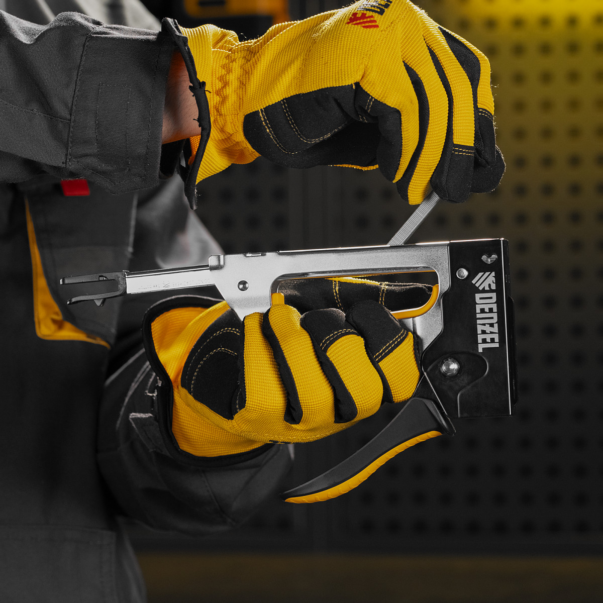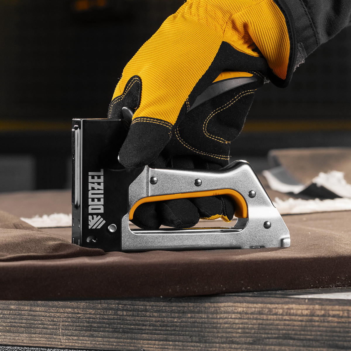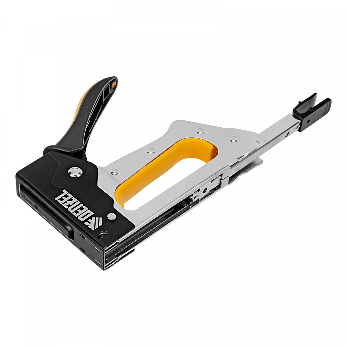Степлер Denzel 40222 устойчив к деформации благодаря стальному корпусу изготовленному методом штамповки.