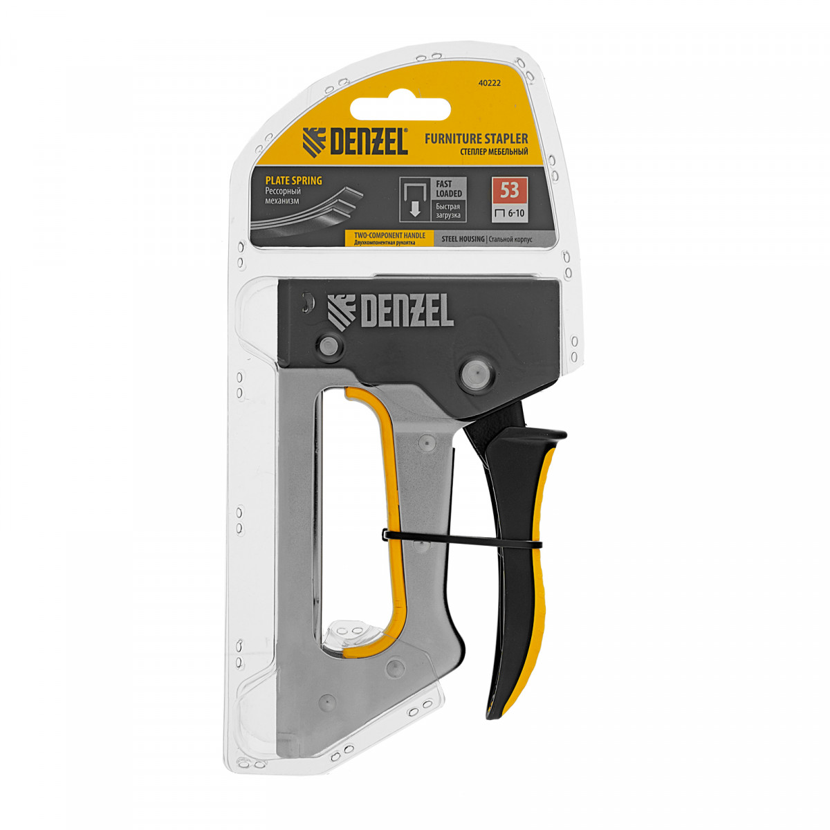 Степлер металлический, скобы в комплекте, 2К рукоятка, тип 53, 6-10 мм Denzel