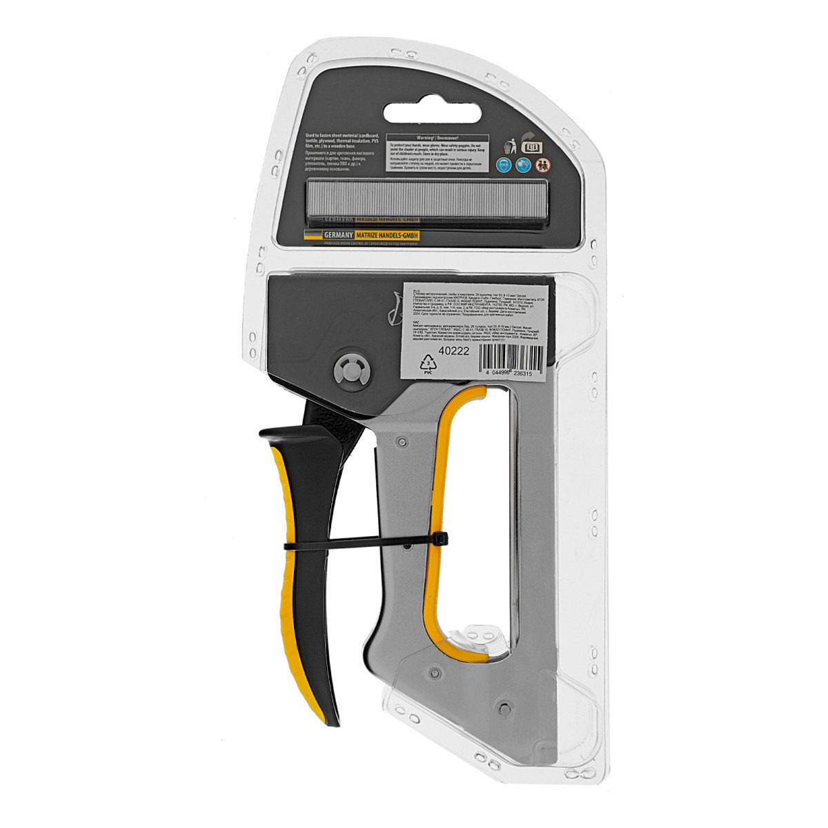 • Расходники в комплекте (200 шт.) — крепеж не нужно приобретать отдельно, степлер полностью готов к работе.