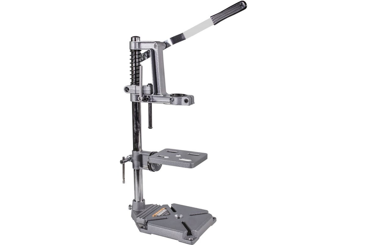 *Стойка Энкор 20089 предназначена для закрепления и удержания дрели во время сверления. Представляет собой металлическую опору с вертикальной трубой, на которой зафиксирован механизм, способный перемещаться по этой трубе вверх и вниз с закрепленной в нем дрелью.