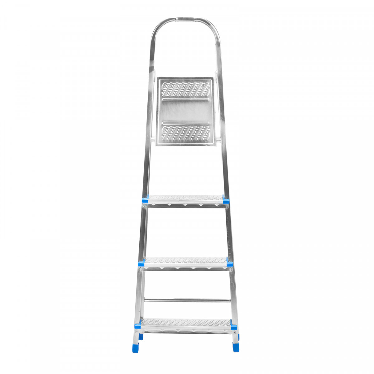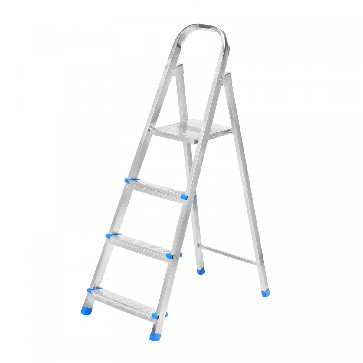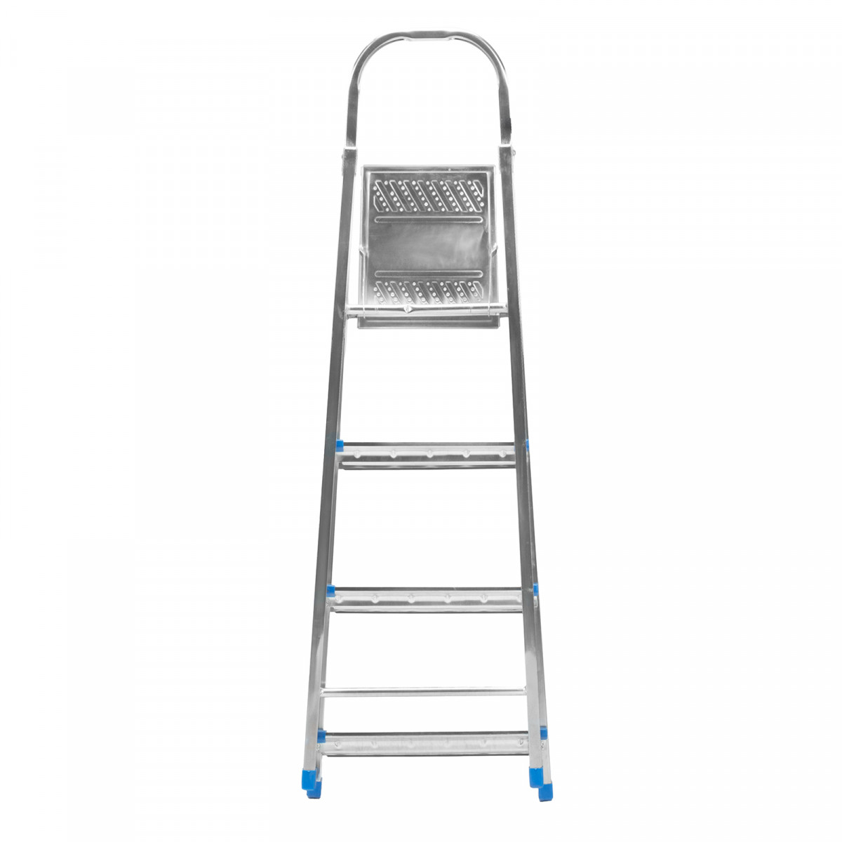 Стальная оцинкованная стремянка Сибртех 97836 с 4 ступенями позволяет повесить полку, картину или шкафчик, достать нужный предмет и решить другие задачи, для которых требуется доступ к предметам на высоте. Рама и ступени из стального профиля выдерживают вес до 120 кг. Расстояние от опорной поверхности до площадки составляет 76,5 см, при среднем росте пользователя 170 см рабочая высота лестницы — 276,5 см. Необходимо соблюдать технику безопасности: размещать стремянку только на ровной плоскости и не использовать ее для работы с дрелью, шуруповертом и другим электроинструментом.
