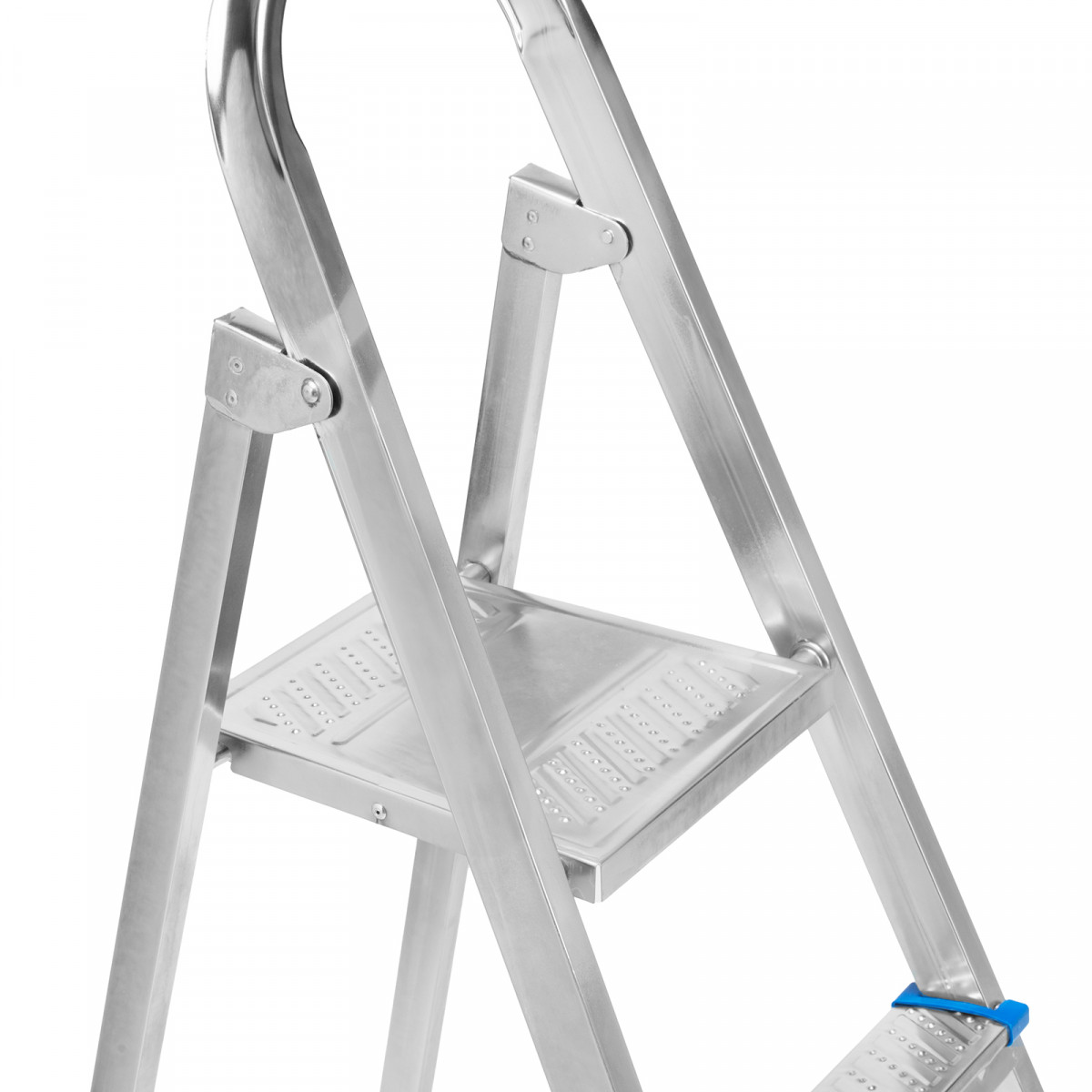 • Простая установка — на верхней площадке предусмотрены специальные зацепы для фиксации стремянки в разложенном состоянии.