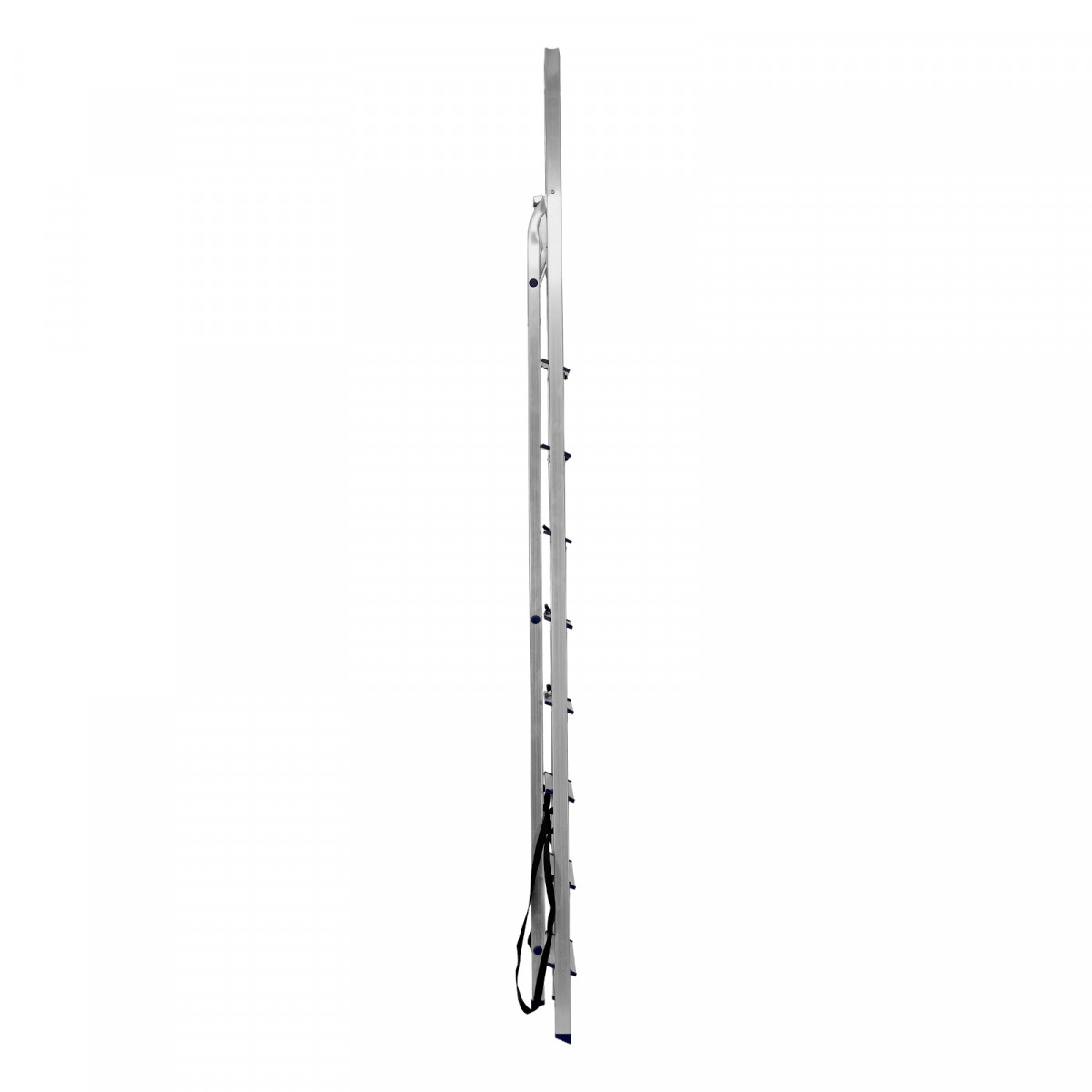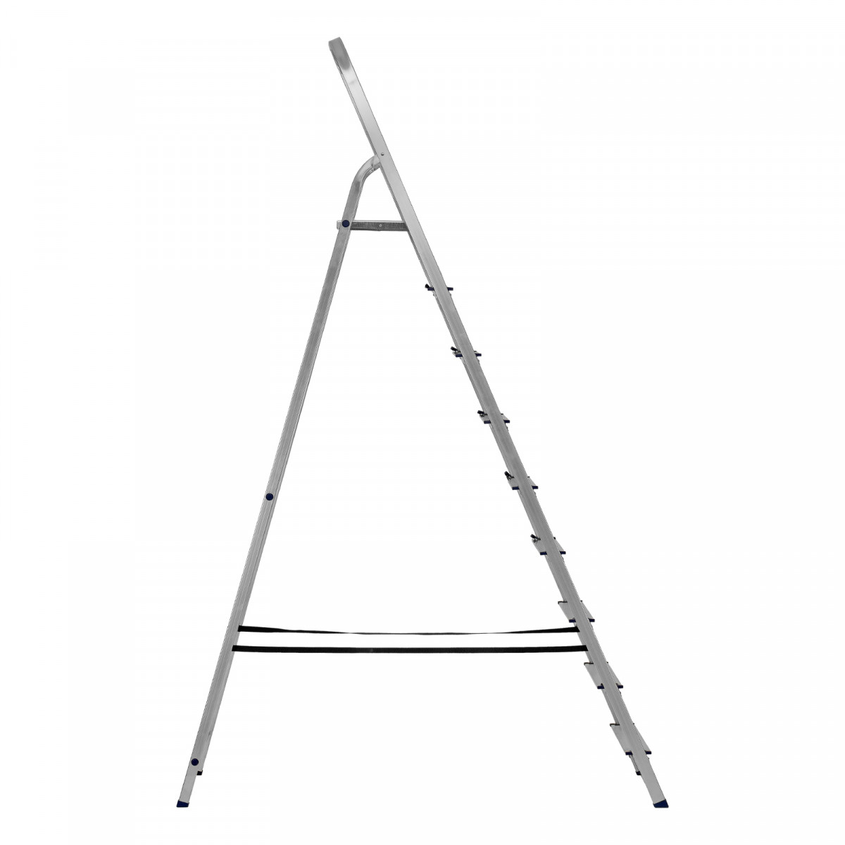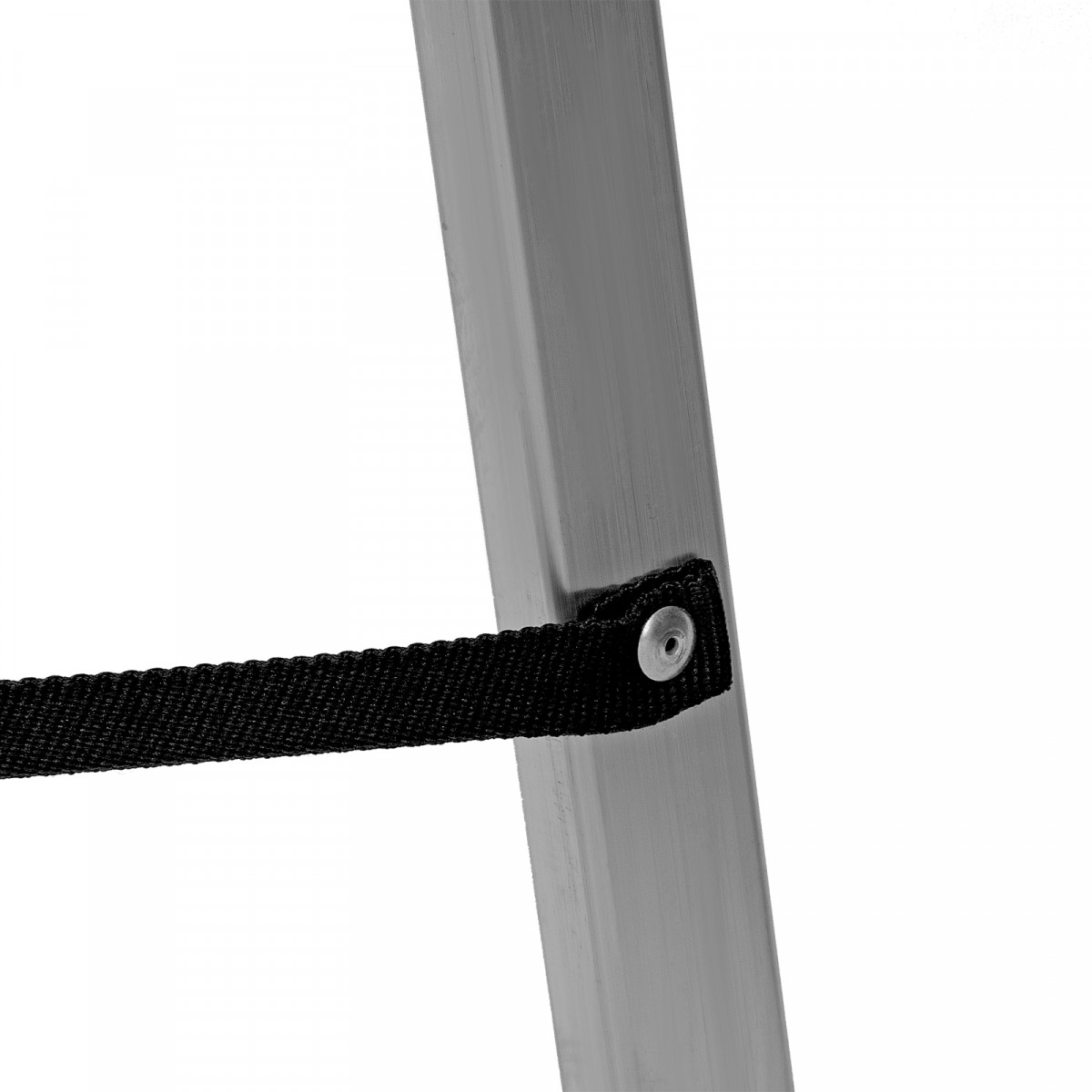 - Надежность — рама из прямоугольного алюминиевого профиля выдерживает нагрузку до 150 кг, широкие ступени закреплены заклепками, страховочные стяжки повышают прочность конструкции.