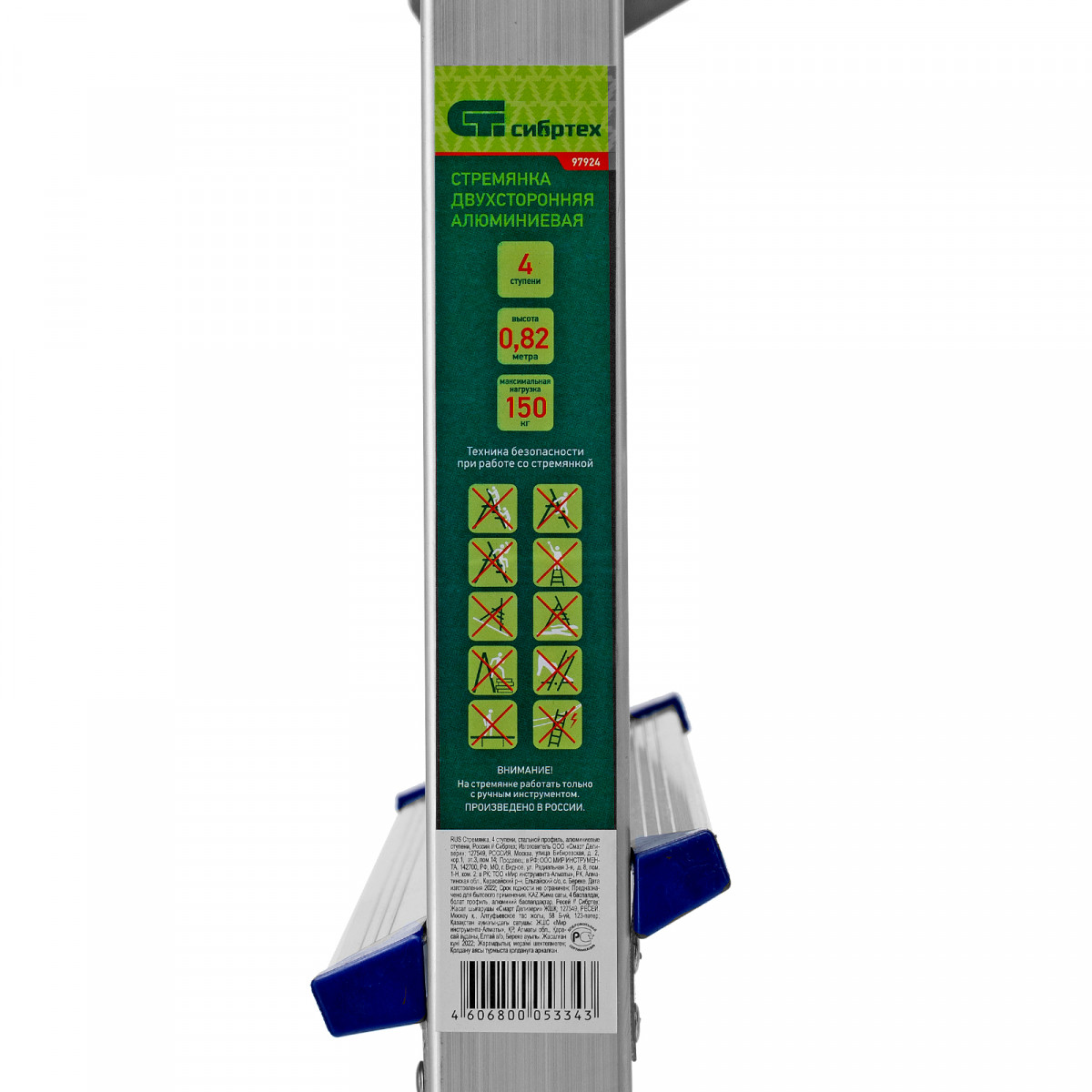 Стремянка двусторонняя алюминиевая Сибртех 97924 с 4 ступенями позволяет выполнять различные действия на высоте — штукатурить или красить стены, менять лампочки, вытирать пыль, доставать нужные предметы с верхних полок. Площадка находится на высоте 82,8 см от опорной поверхности, рабочая высота стремянки составляет 282,8 см (при среднем росте пользователя 170 см).