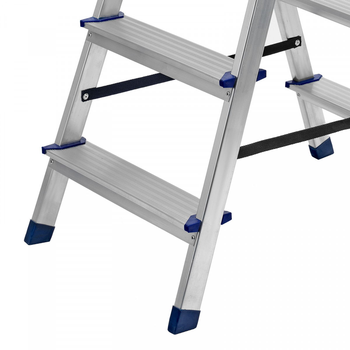 • Продуманная конструкция — нейлоновые страховочные стяжки повышают надежность фиксации стремянки в рабочем положении.