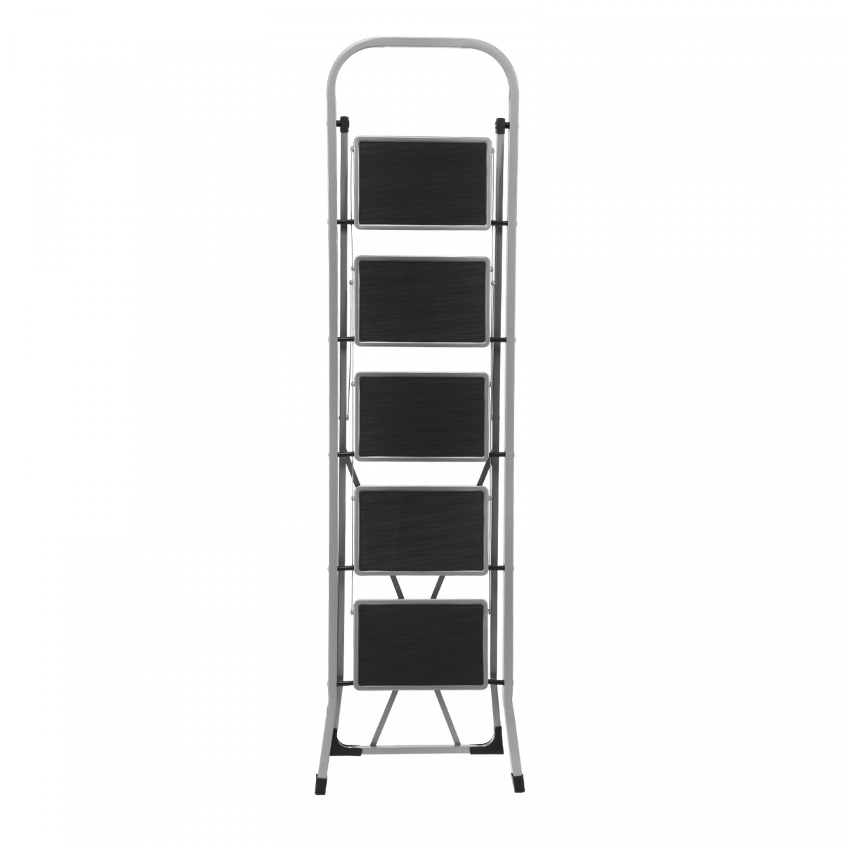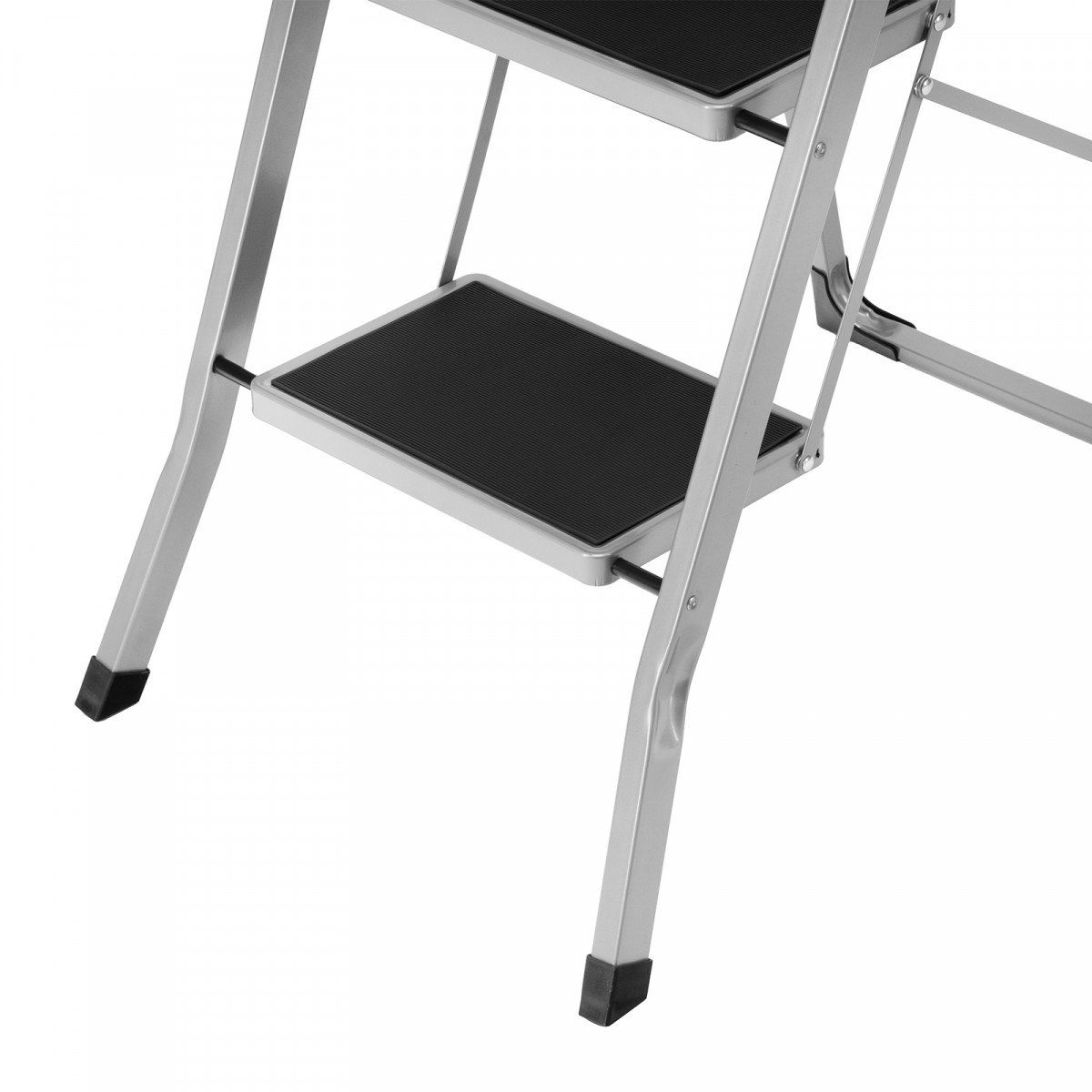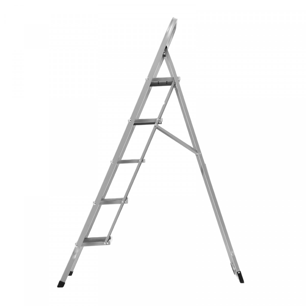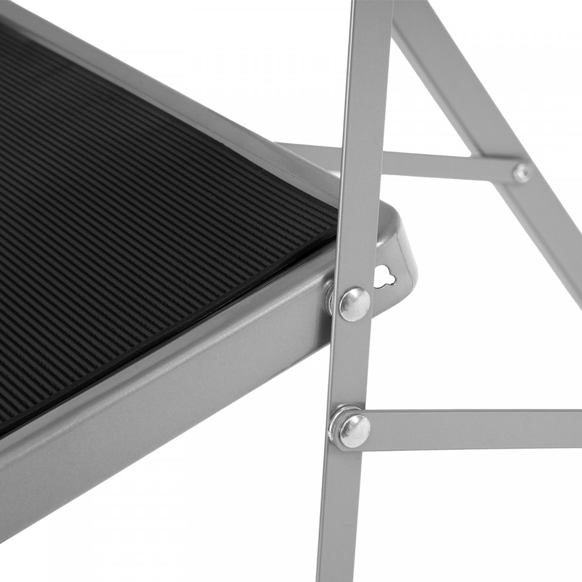 • Прочная конструкция — стремянка изготовлена из стального профиля и снабжена надежным механизмом раскладывания, поэтому выдерживает нагрузку до 150 кг.