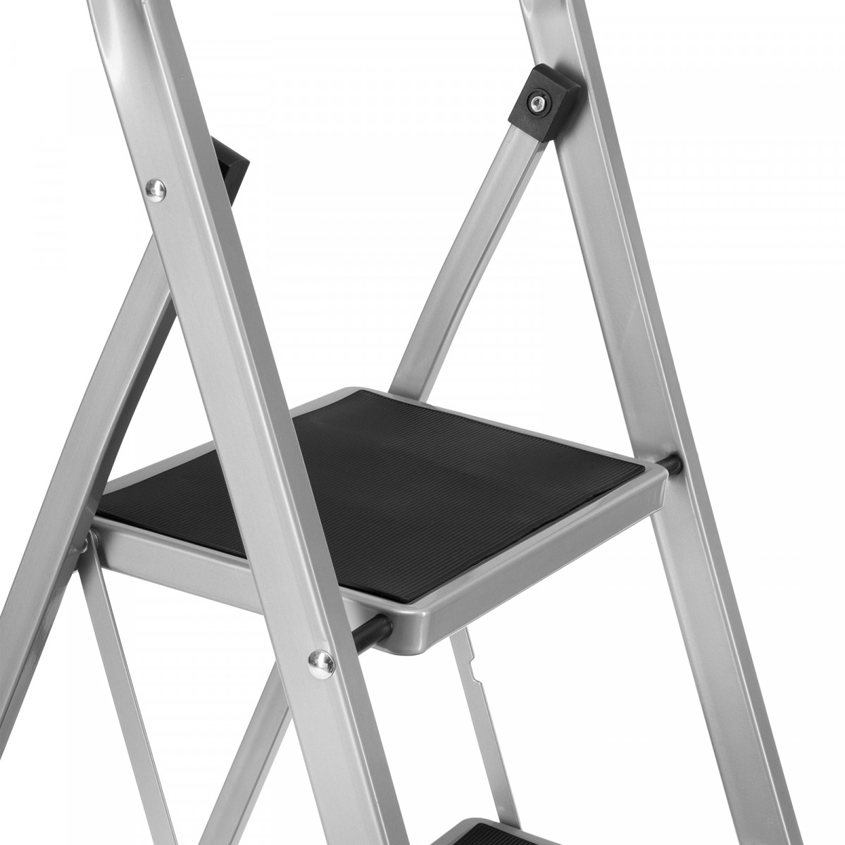 • Удобное хранение — за счет толщины в сложенном виде 4,5 см стремянка не занимает много места.