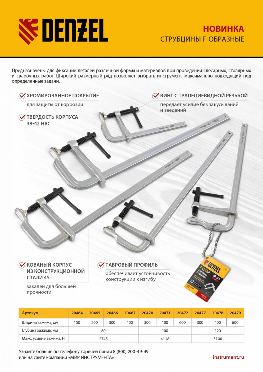 • Хромированное покрытие надежно защищает струбцину от коррозии.