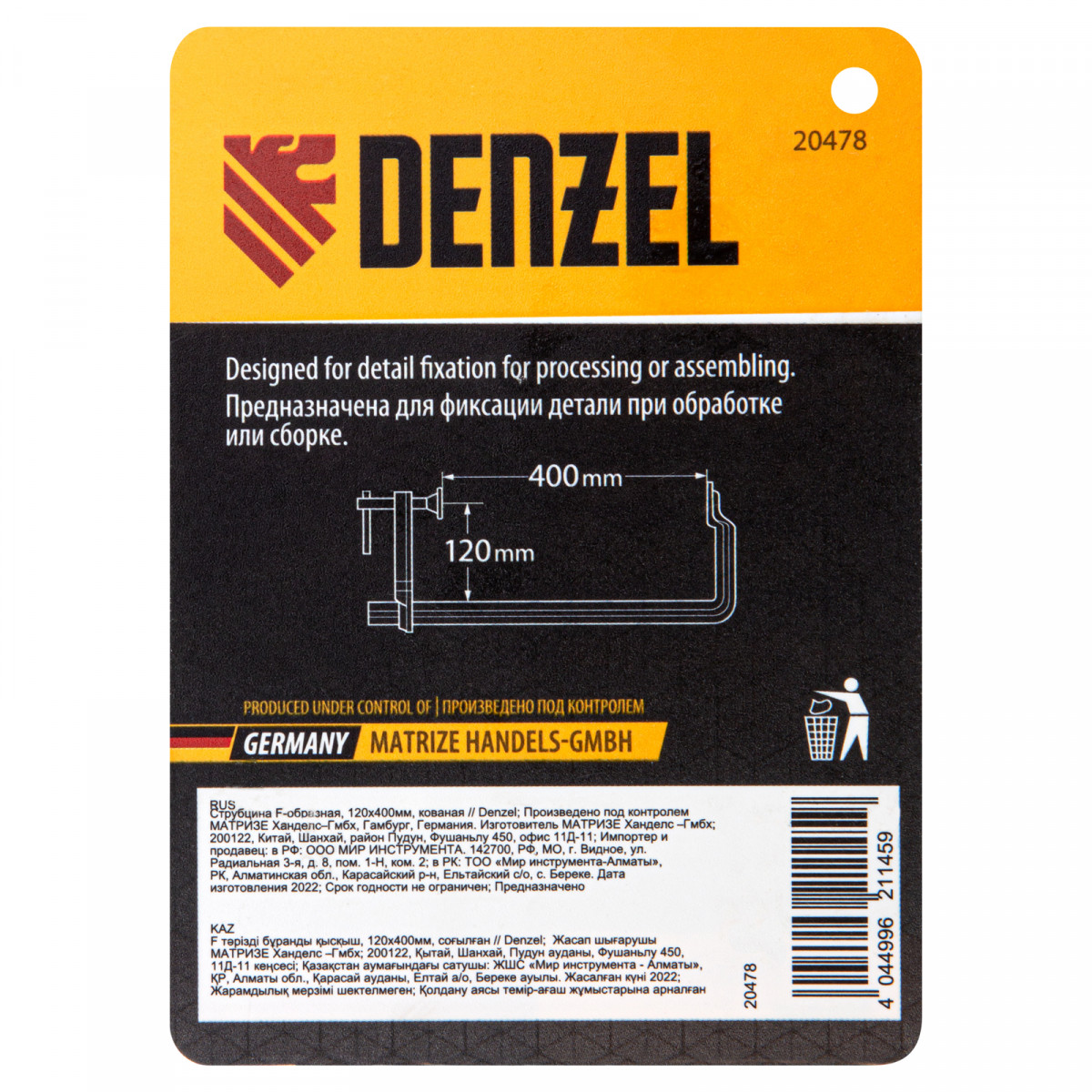 Струбцина F-образная, 120x400мм, кованая Denzel