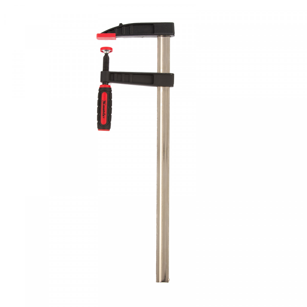 F-образная струбцина Matrix 20407 размером 500 х 120 х 600 мм используется для зажима металлических, деревянных и других заготовок для их последующей обработки или сборки. Представляет собой штангу, на которой установлено 2 кронштейна — неподвижный и подвижный. Деталь помещается между ними и прижимается к губкам при помощи винтового зажима с трапециевидной резьбой. Подвижный кронштейн позволяет регулировать величину захвата, которая может достигать 500 мм. Струбцину применяют для выполнения слесарных и столярных работ.