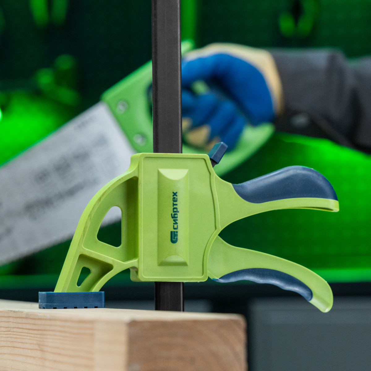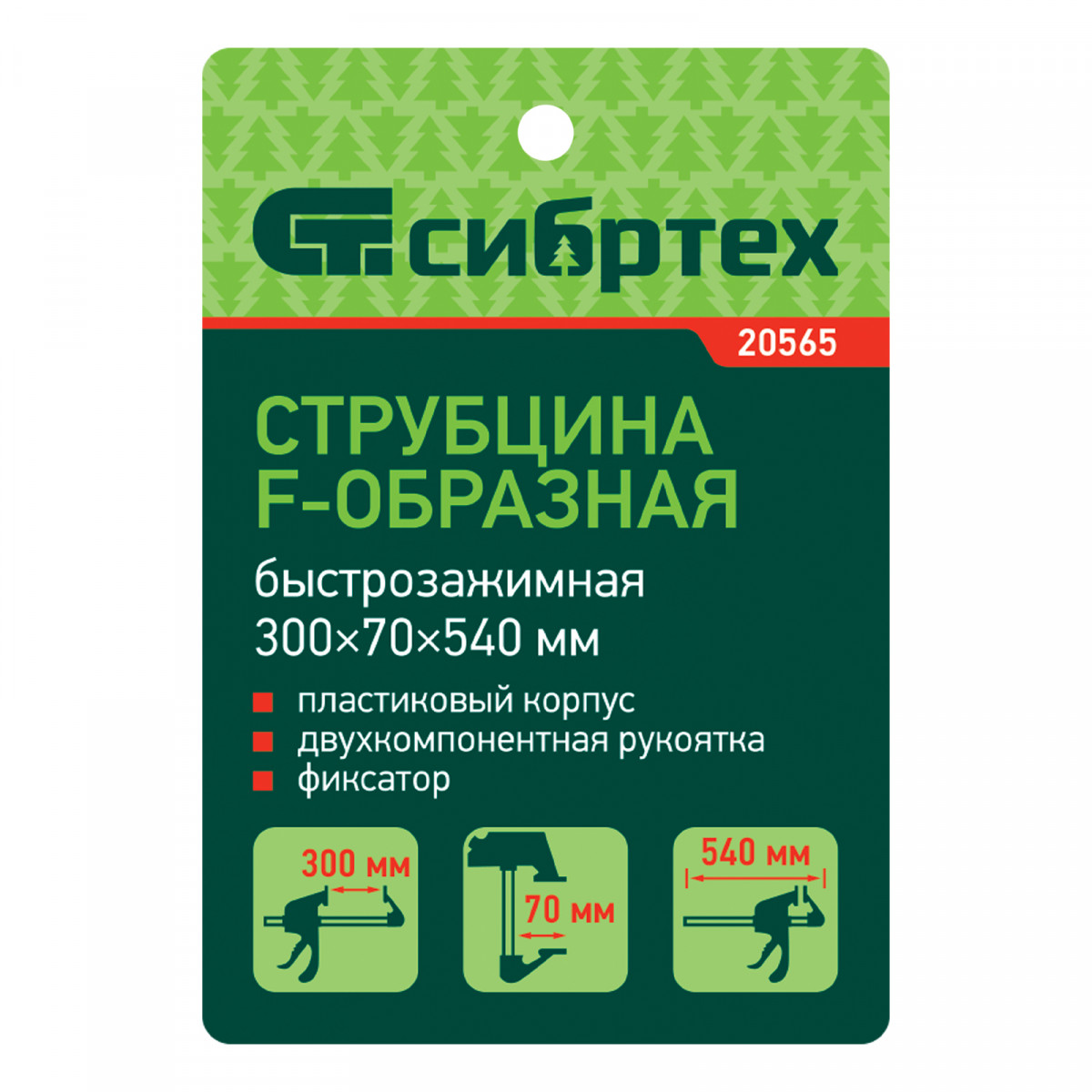 Струбцина F-образная, быстрозажимная, 300 х 70 х 540 мм, пластиковый корпус, фиксатор, двухкомпонентная рукоятка Сибртех