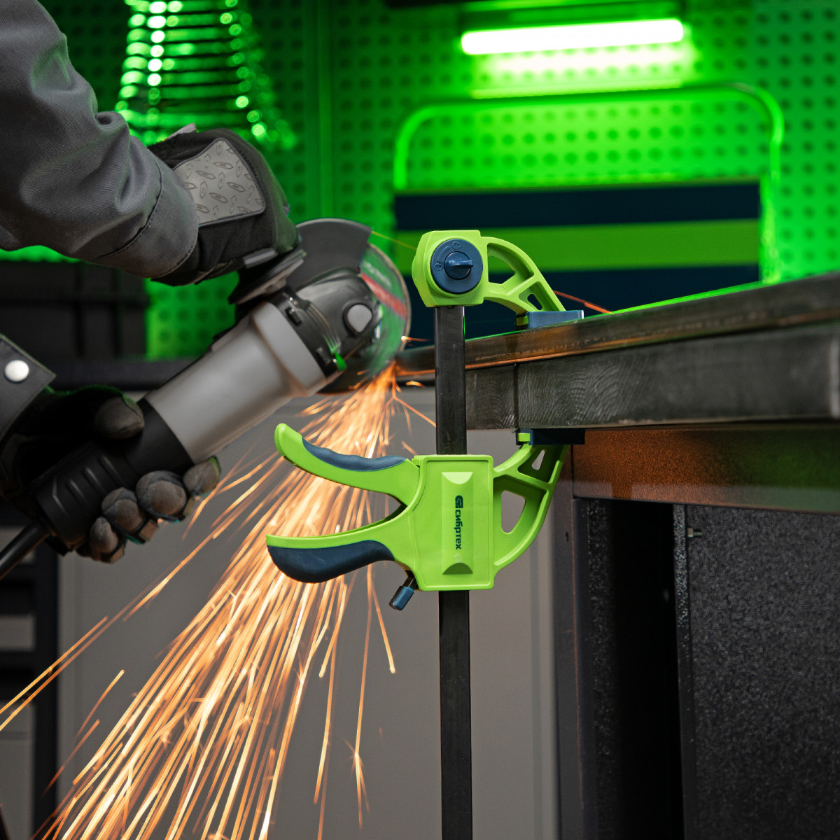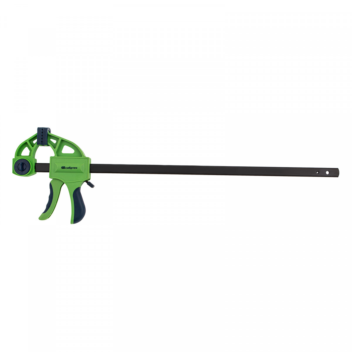 F-образная быстрозажимная струбцина Сибртех 20566 длиной 660 мм, с шириной и глубиной зажима 450 и 70 мм соответственно, в пластиковом корпусе, с фиксатором и двухкомпонентной рукояткой, позволяет зажимать заготовки для их дальнейшей обработки или сборки. Помогает решать множество задач благодаря оптимальной глубине зажима. Пластинчатый механизм пошагово перемещает подвижную губку вдоль направляющей до достижения максимально плотного захвата детали. Фиксатор препятствует движению губки в обратную сторону. Струбцина пригодится в столярной мастерской, а также будет полезна в быту.
