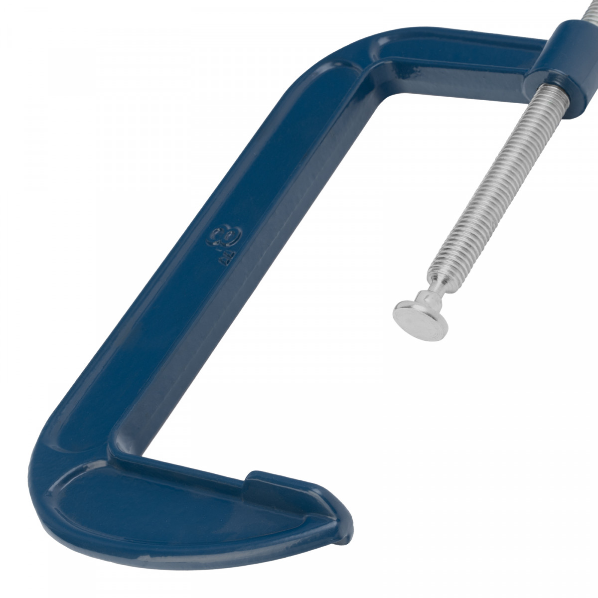 • Надежная фиксация деталей — струбцина имеет подвижный зажим, установленный на шаровой шарнир.