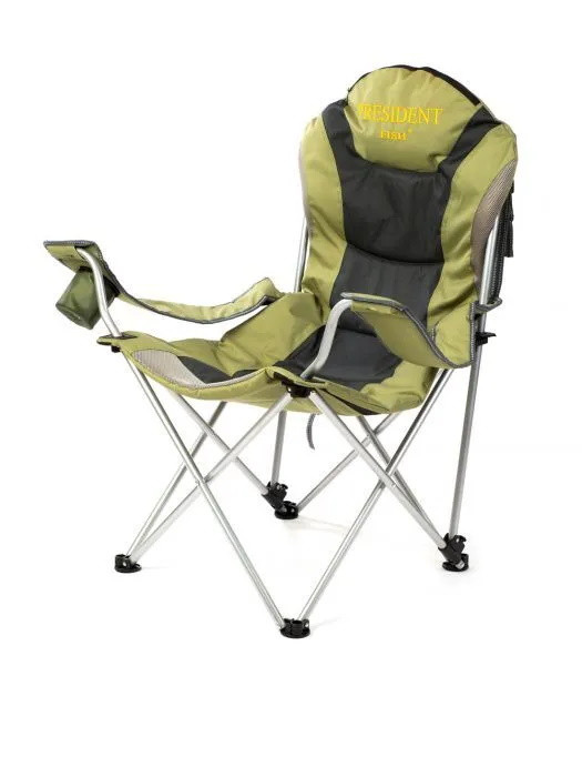 Кресло туристическое "PRESIDENT FISH" очень комфортное и удобное, отлично подходит для использования на рыбалке, охоте, пикнике, в туристическом лагере, и также прекрасно подходит в качестве дачной мебели. Кресло имеет мягкие объемные подлoкoтники, c подставкой для стакана, а чехол от стула убирается под молнию сверху спинки стула и образует мягкий подголовник, что создает дополнительное удобство. Для более комфортного отдыха, кресло имеет возможность регулирования угла наклона спинки З (три позиции).