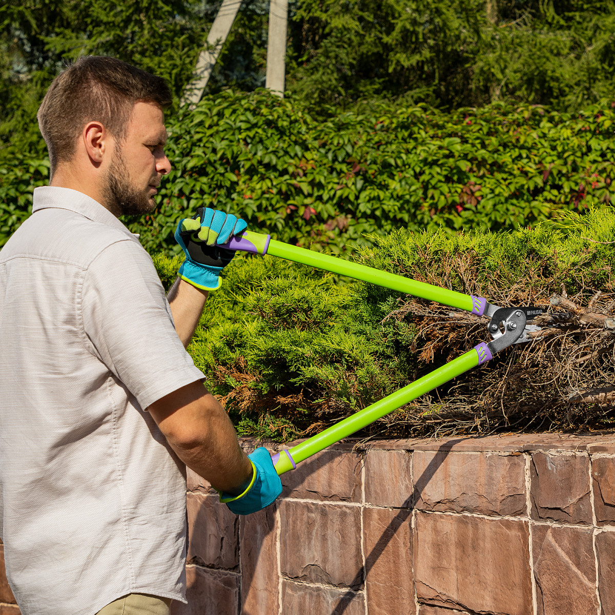 - Удобная работа — благодаря рифленой поверхности наковальни сучкорез надежно удерживает ветку во время обрезки.