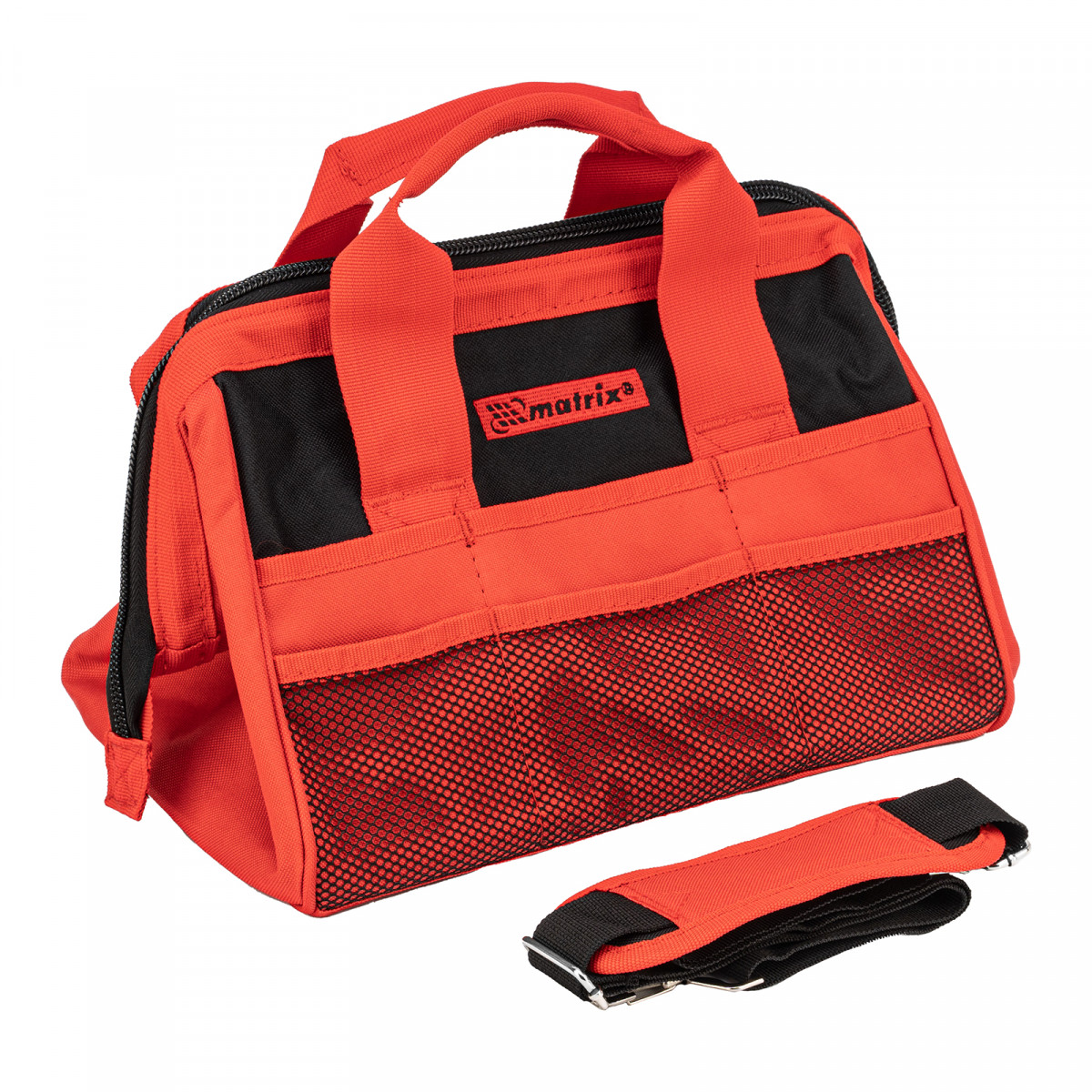 Сумка Matrix 90259 с 18 карманами, размером 320 х 215 х 250 мм, предназначена для транспортировки и хранения слесарных или столярных инструментов. Может использоваться для перевозки автопринадлежностей. В 18 карманах и вместительном основном отделении можно разместить инструменты разного размера. Сумка пригодится монтажнику, слесарю, строителю, будет полезна дома и в поездке.