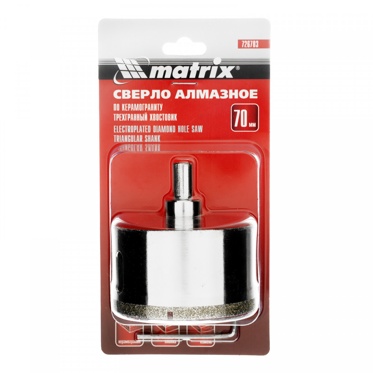 Сверло алмазное по керамограниту, 70 х 67 мм, трехгранный хвостовик Matrix