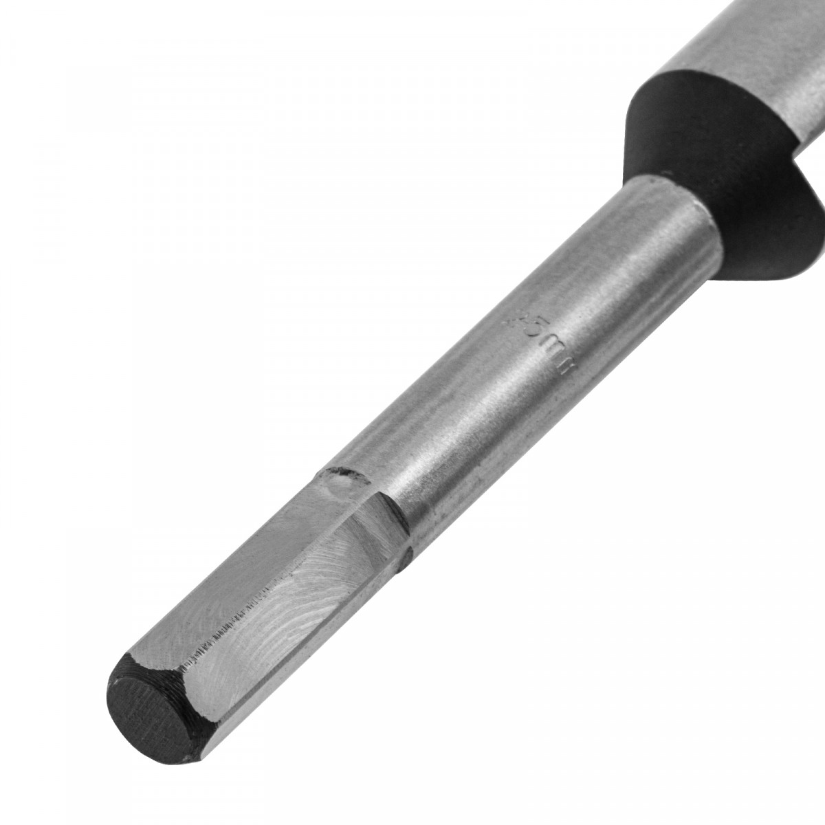 • Прочность и износостойкость — сверло изготовлено из инструментальной стали, а режущая часть закалена до твердости 40 HRC.