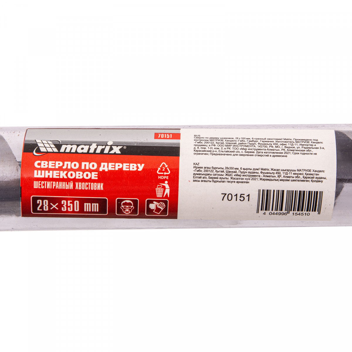 Сверло по дереву шнековое, 28 х 350 мм, шестигранный хвостовик Matrix