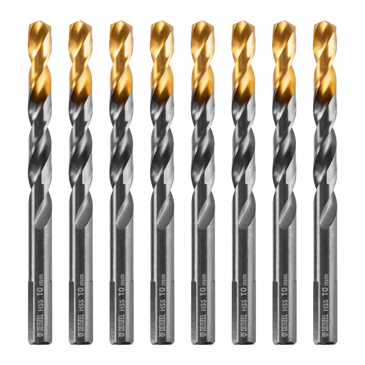 Сверло по металлу, 10 мм, HSS-Tin, Golden Tip, 8 шт. Denzel