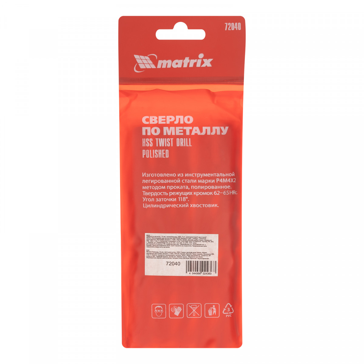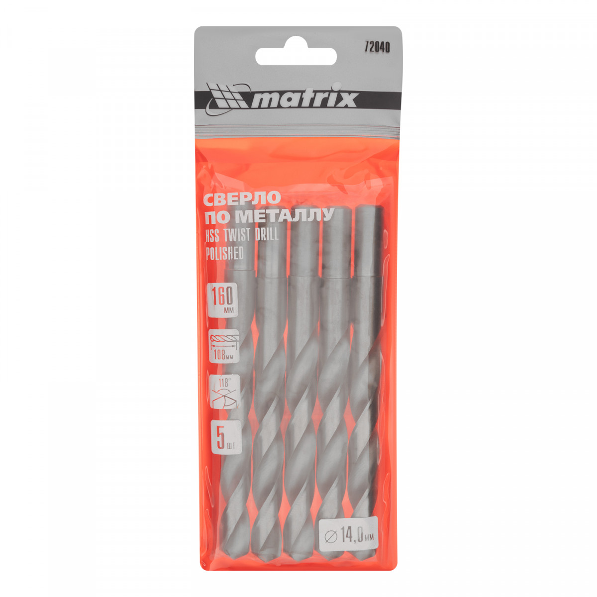 Сверло по металлу, 14 мм, полированное, HSS, 5 шт, цилиндрический хвостовик Matrix
